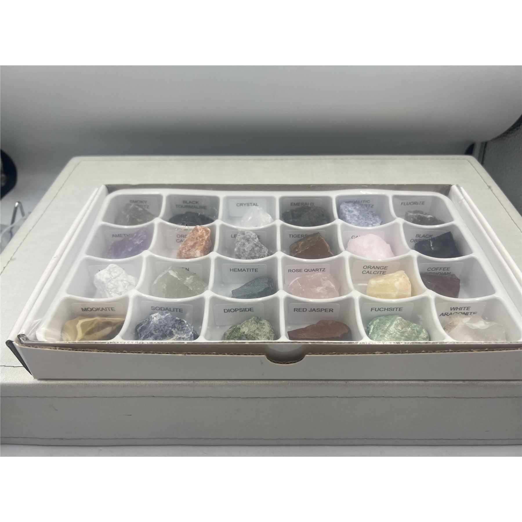 One box has 24 different crystals and stones .