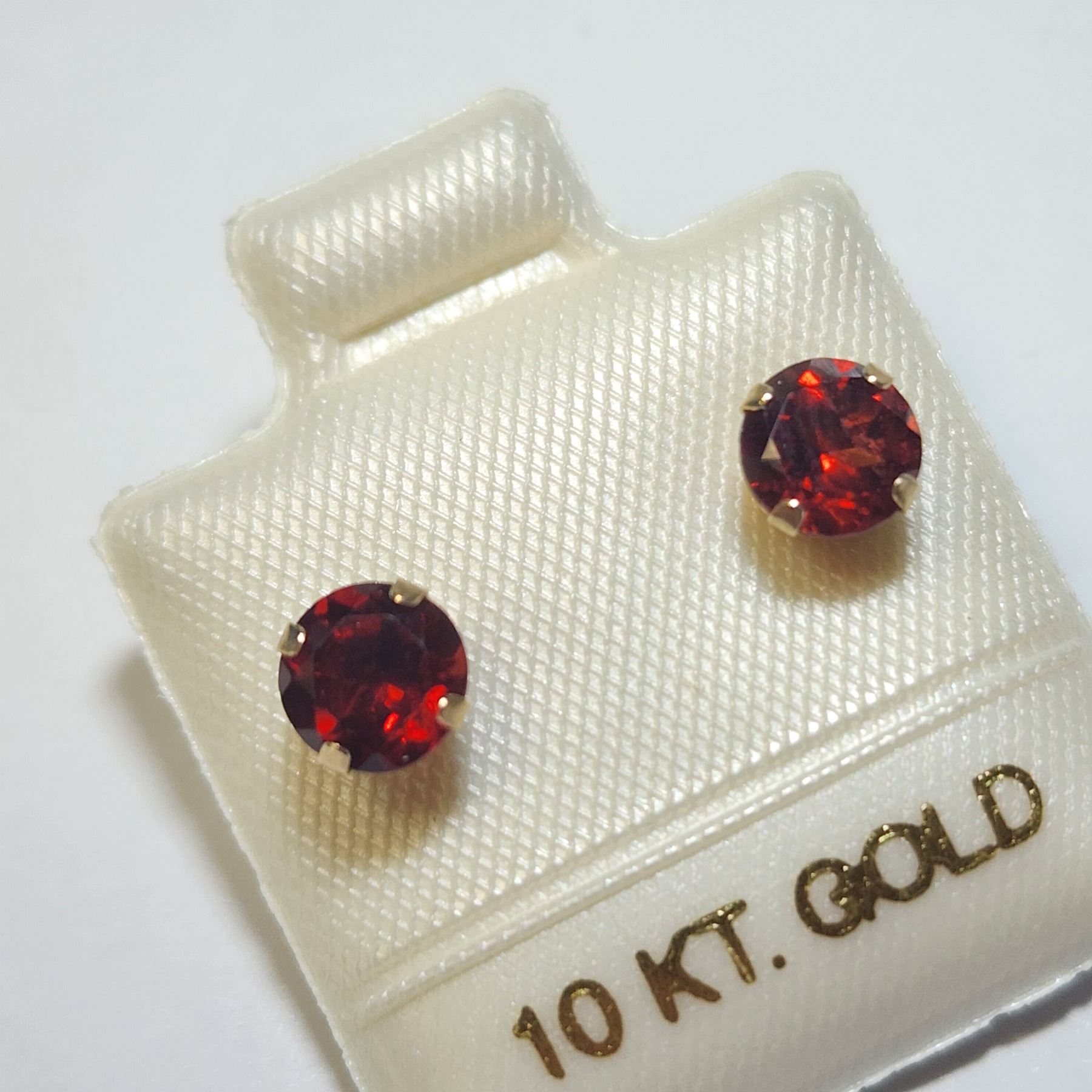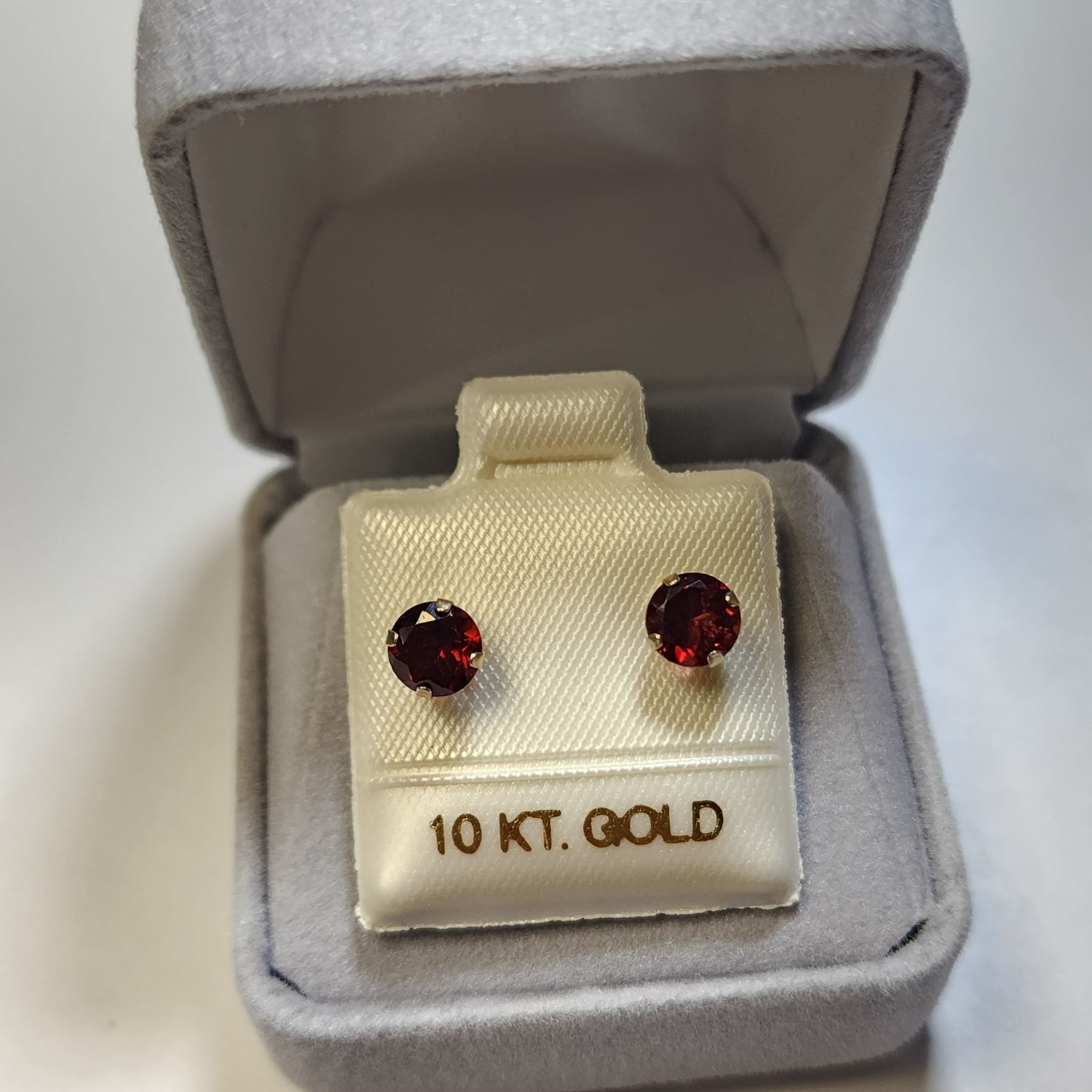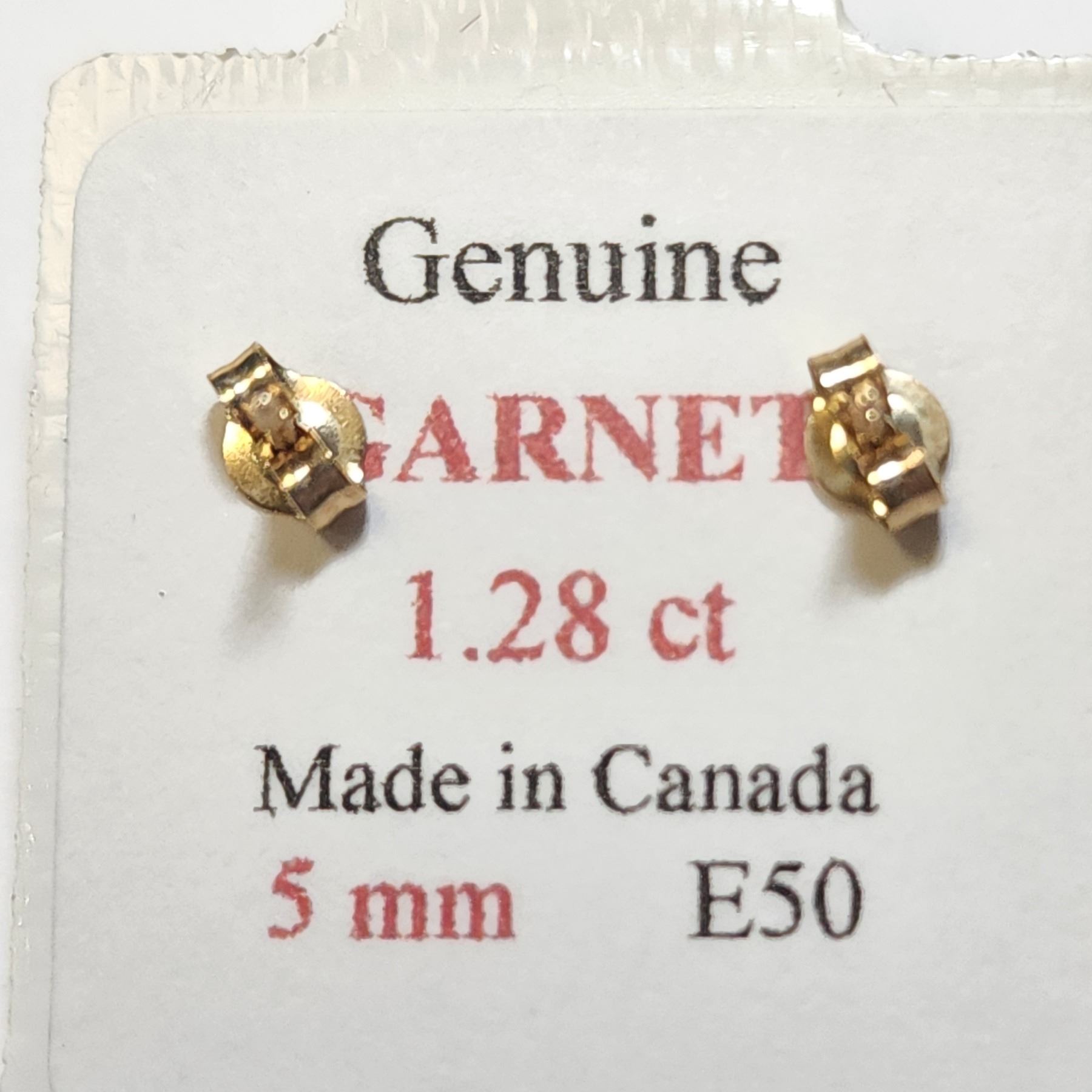 10K Yellow Gold Garnet 5Mm(1.28ct) Earrings, Made in Canada, Suggested Retail Value $240 (Estimated Selling Price from $36 to $72)