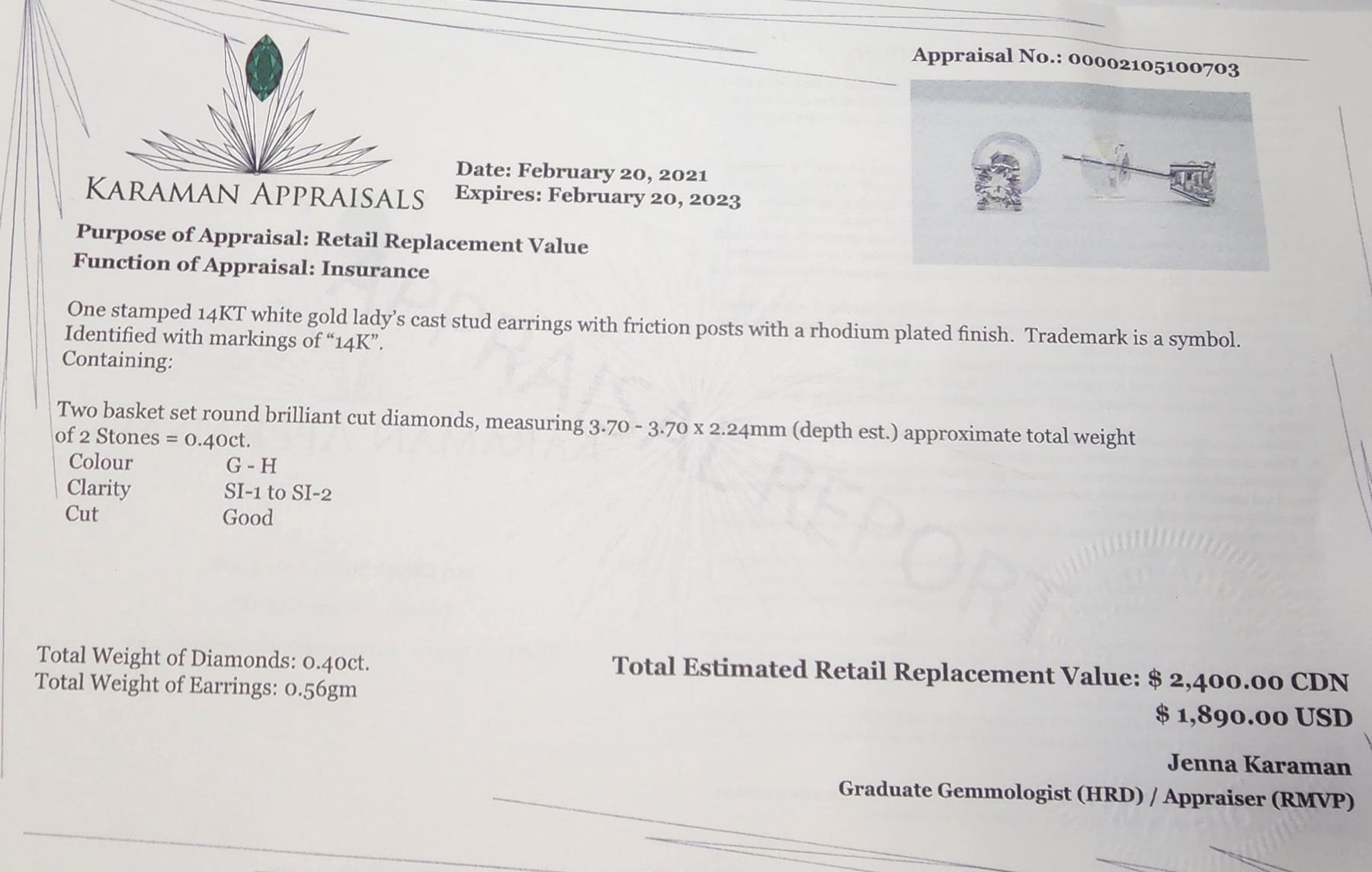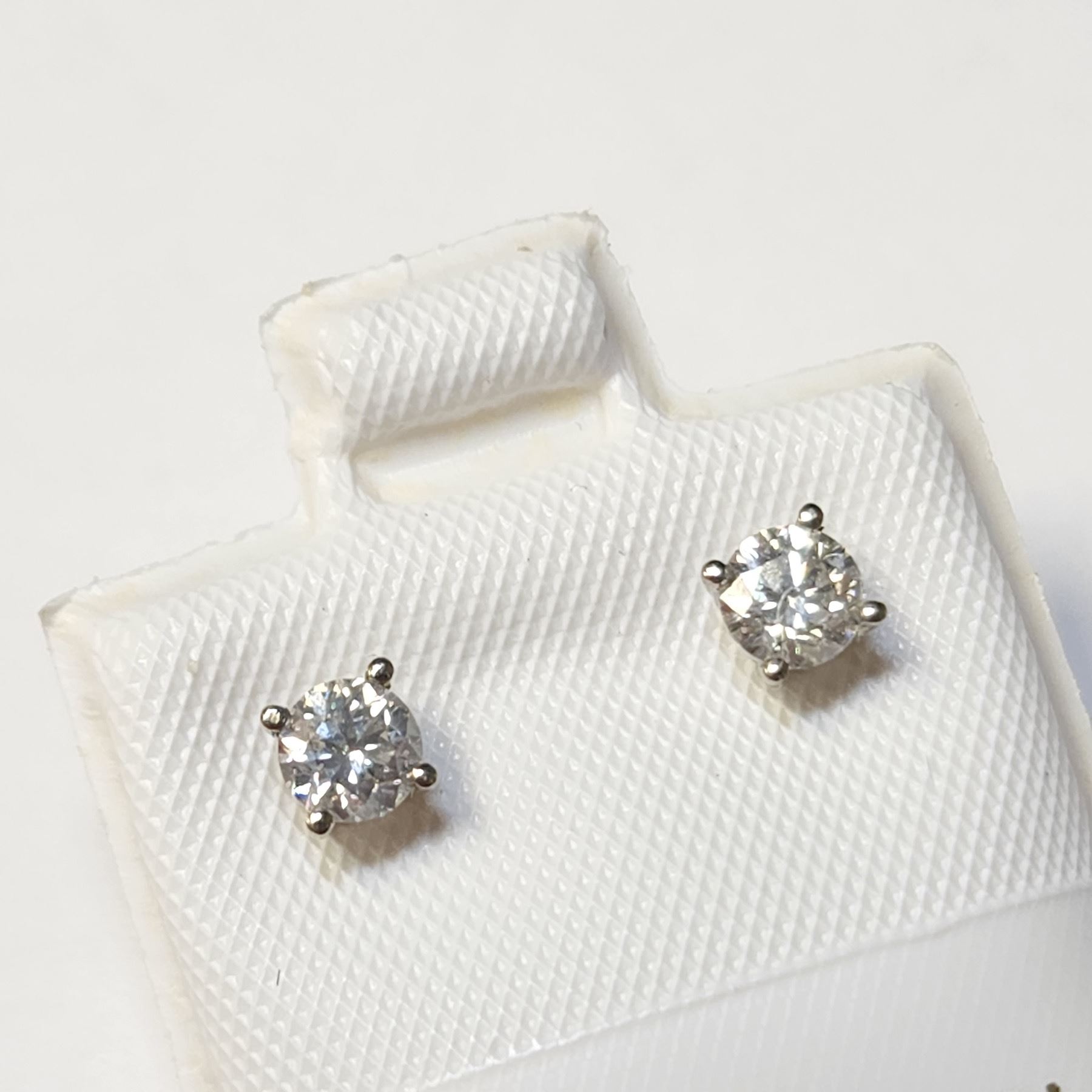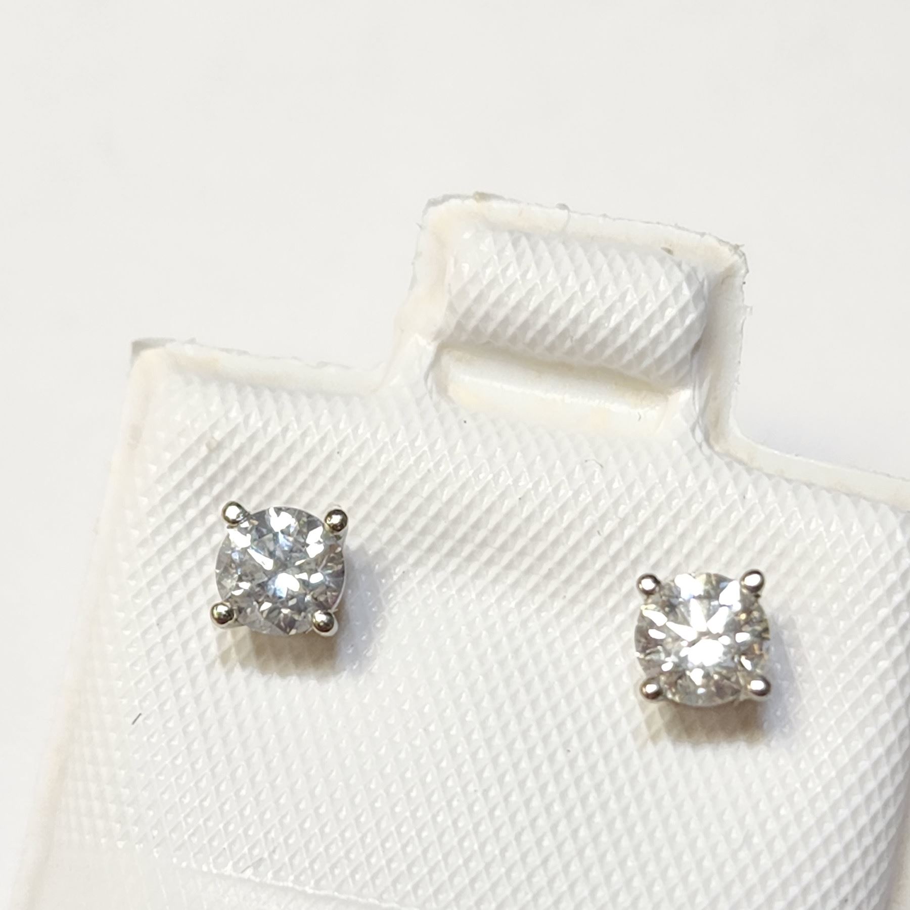 14K White Gold Diamond (0.4Ct,Si1-2,G-H) Earrings (~weight 0.56g), Made in Canada, Appraised Retail $2400
