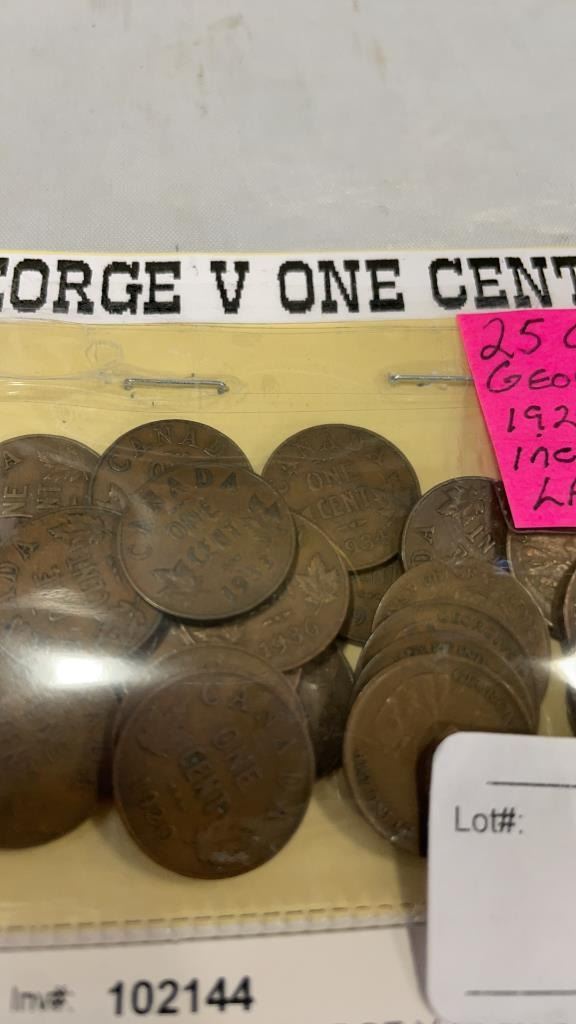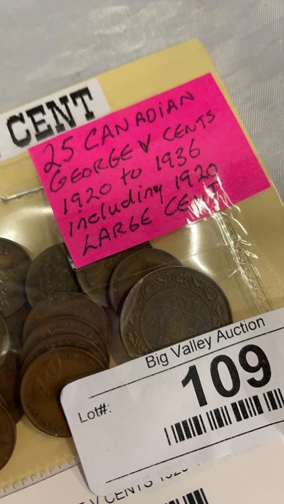 25 CANADIAN GEORGE V CENTS 1920-1936 INCLUDING 1920 LARGE CENTS
