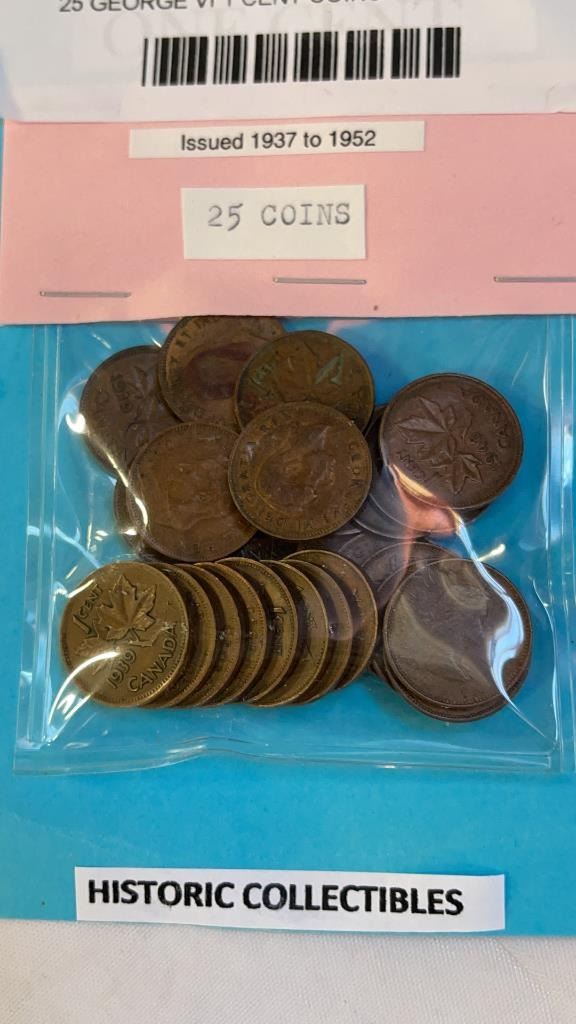 25 GEORGE VI 1 CENT COINS