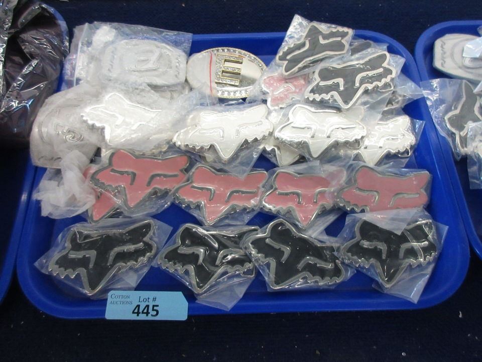 3" x 4". A few are metal buckles with initials.