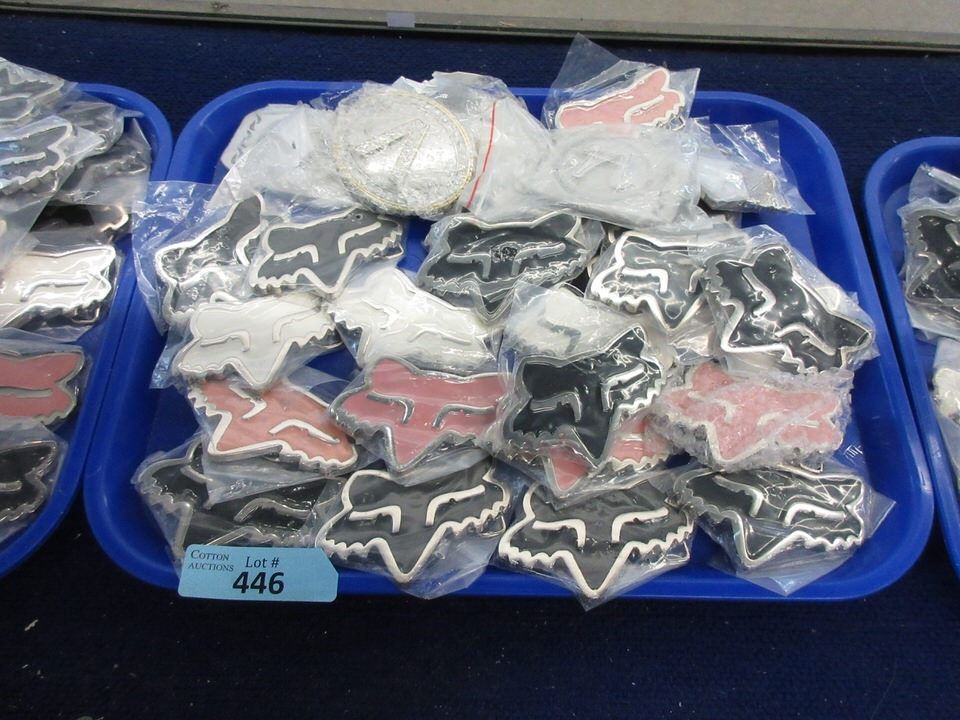 3" x 4". A few are metal buckles with initials.