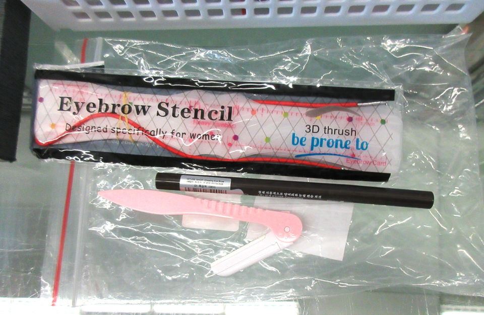 Each kit contains stencils, folding eyebrow blade and a brown eyebrow pencil.