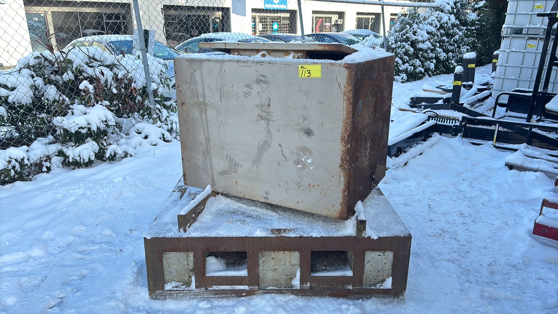26.5" W X 27"D X 37"H INDUSTRIAL COMBINATION SAFE *OPEN/NO COMBINATION* & A 48"W X 47"D X 14.5"H INDUSTRIAL CEMENT PACKING BLOCK