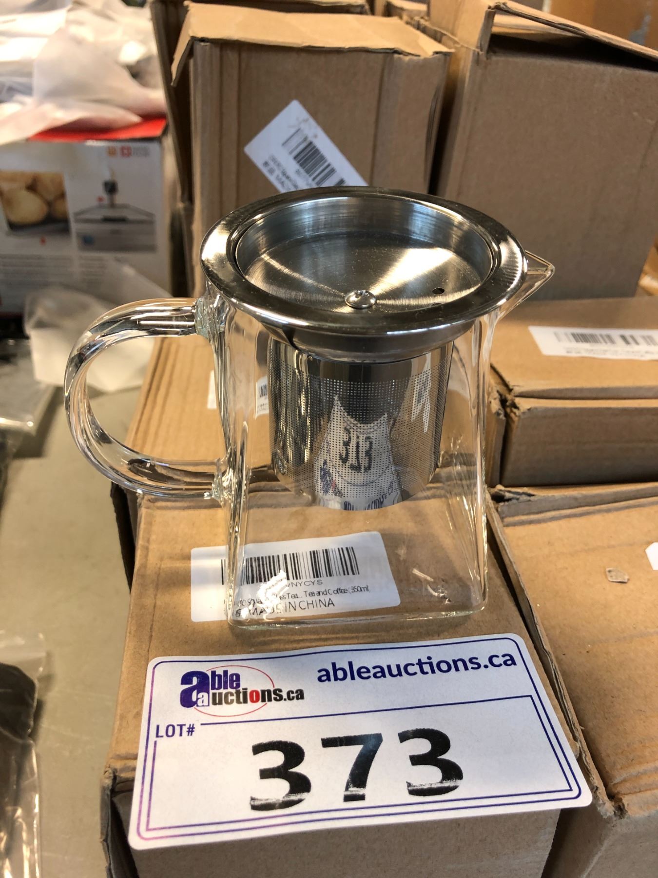 26 GLASS TEA POTS WITH TEA STRAINER