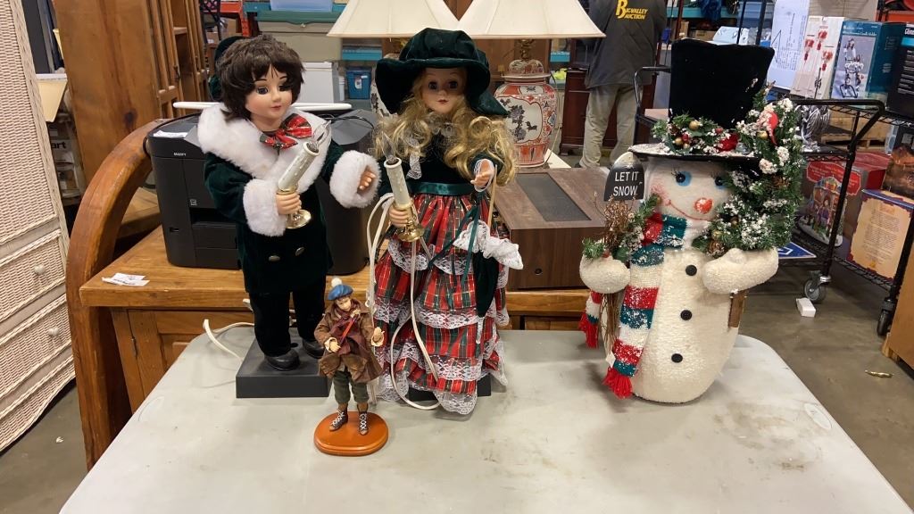 26 INCH ANIMATED BOY AND GIRL, AND 26 INCH SNOWMAN FIGURE