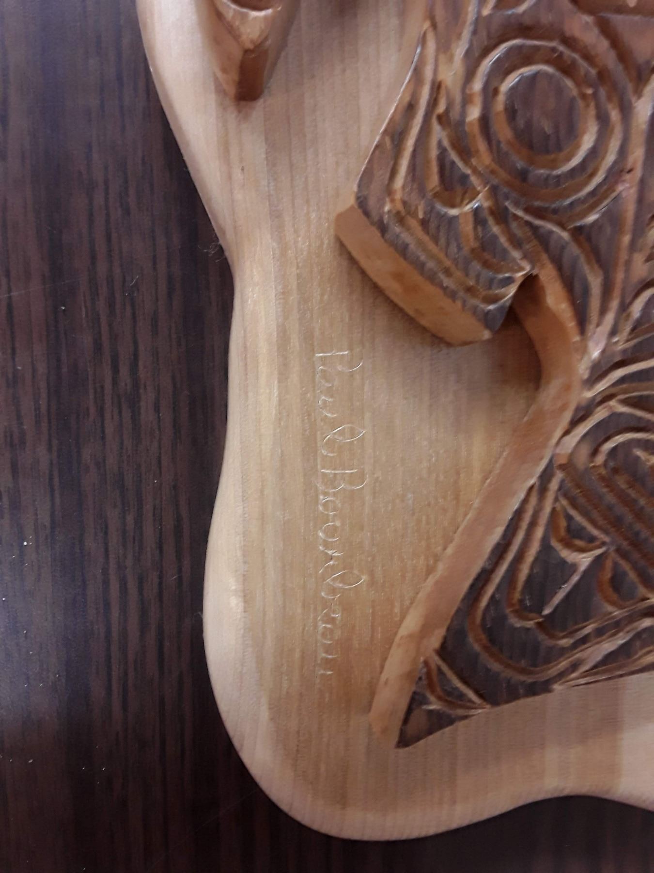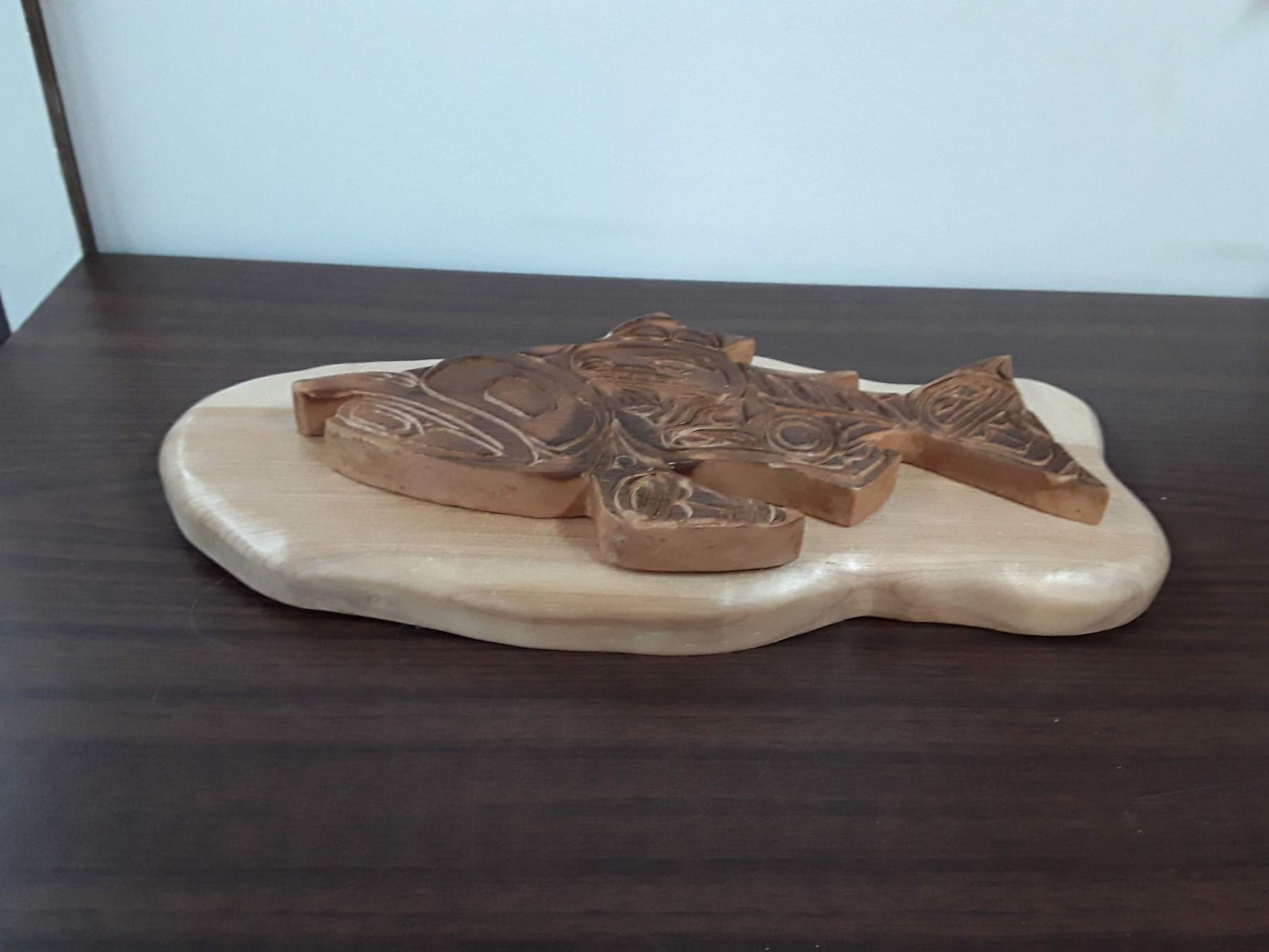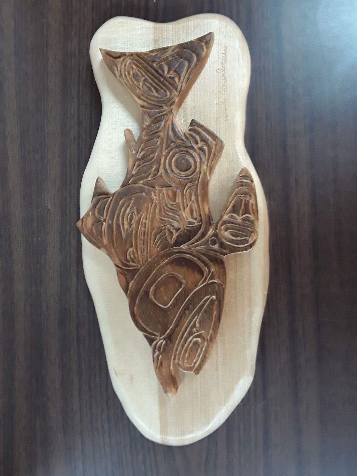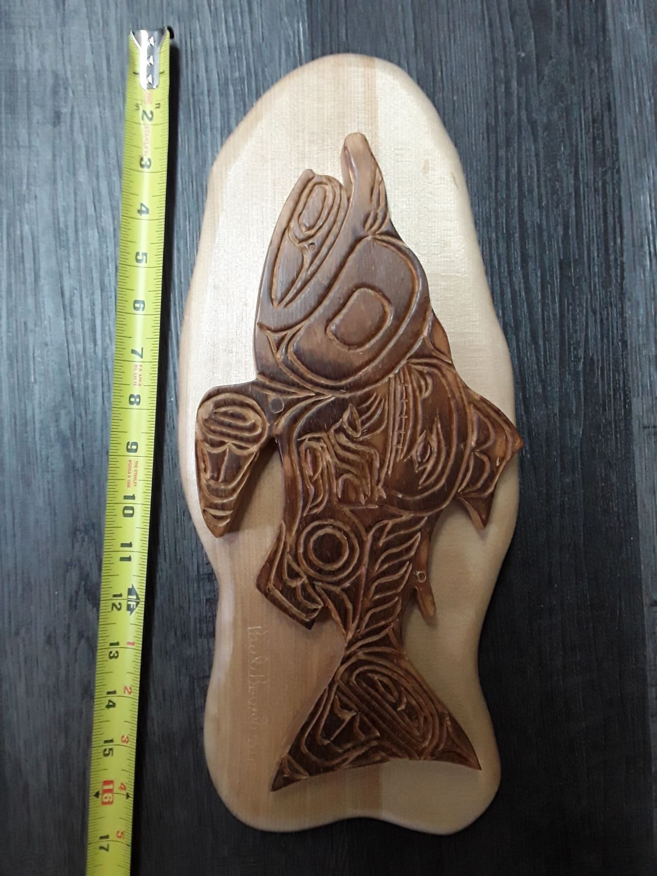 273 -Native Motif carving of a salmon ****** Signed Paul Bourbeau Carving ******** 17% Buyer Fee. Payment Processed through Live Auction World ( Visa or Master Card ) pick up Saturday, Monday or Tuesday