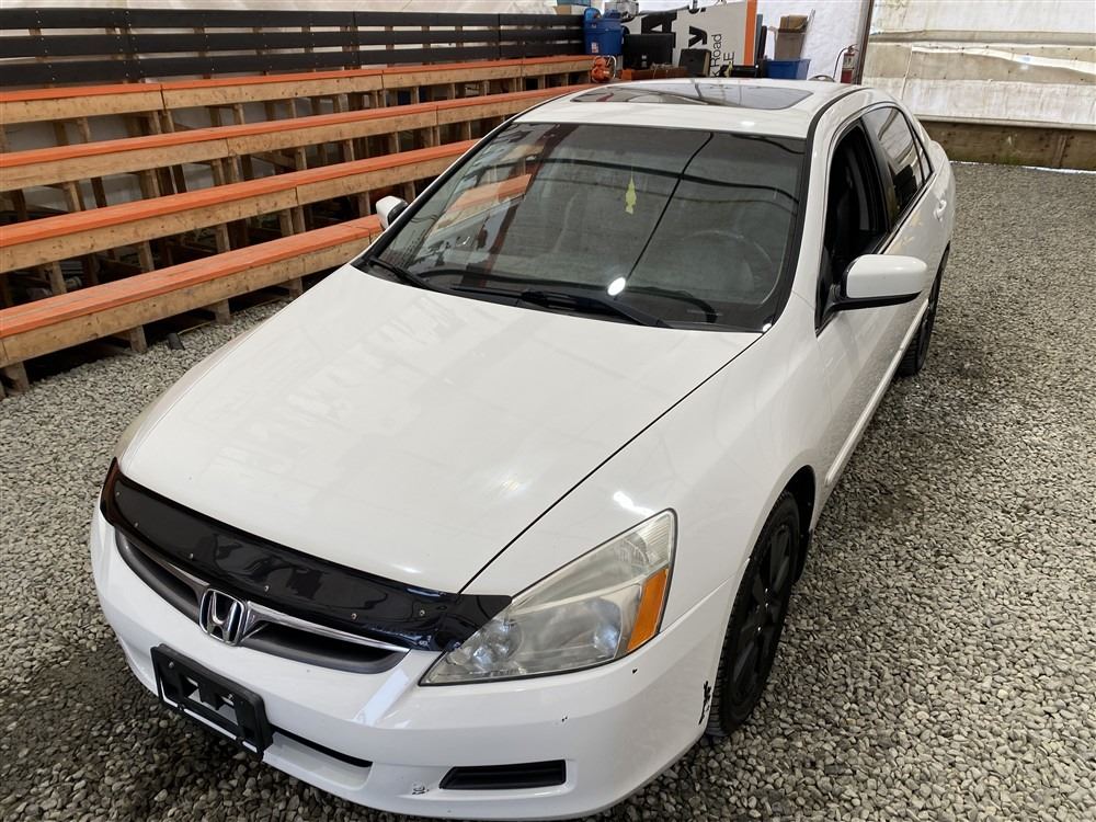 2007 HONDA ACCORD, WHITE, 314468 KMS, 3.0L, 6 CYLINDER, GASOLINE, AUTOMATIC, TRANSMISSION, FRONT WHEEL DRIVE, 5 PASSENGER. AIR CONDITIONING, POWER WINDOWS, POWER LOCKS, KEY-LESS ENTRY, TILT STEERING, CRUISE CONTROL, ALLOY WHEELS, ANTI THEFT, DUAL AIR BAGS, POWER SUNROOF, CD PLAYER, CD STACKER, LEATHER SEATS, POWER SEATS, HEATED SEATS, HEATED MIRRORS, TRACTION CONTROL, STEERING WHEEL CONTROLS, POWER MIRRORS, SPLIT-FOLDING REAR SEATS. DECLARATIONS: NO DESIGNATIONS 4 ACCIDENTS 1 GLASS CLAIM, TOTALLING $4442. SERVICE HISTORY SHOWS15 RECORDS. AUCTION NOTES: STOCK #: J801149 1HGCM66597A801149 NOT MECHANICALLY INSPECTED, NOT SUITABLE FOR TRANSPORTATION, MUST TOW.