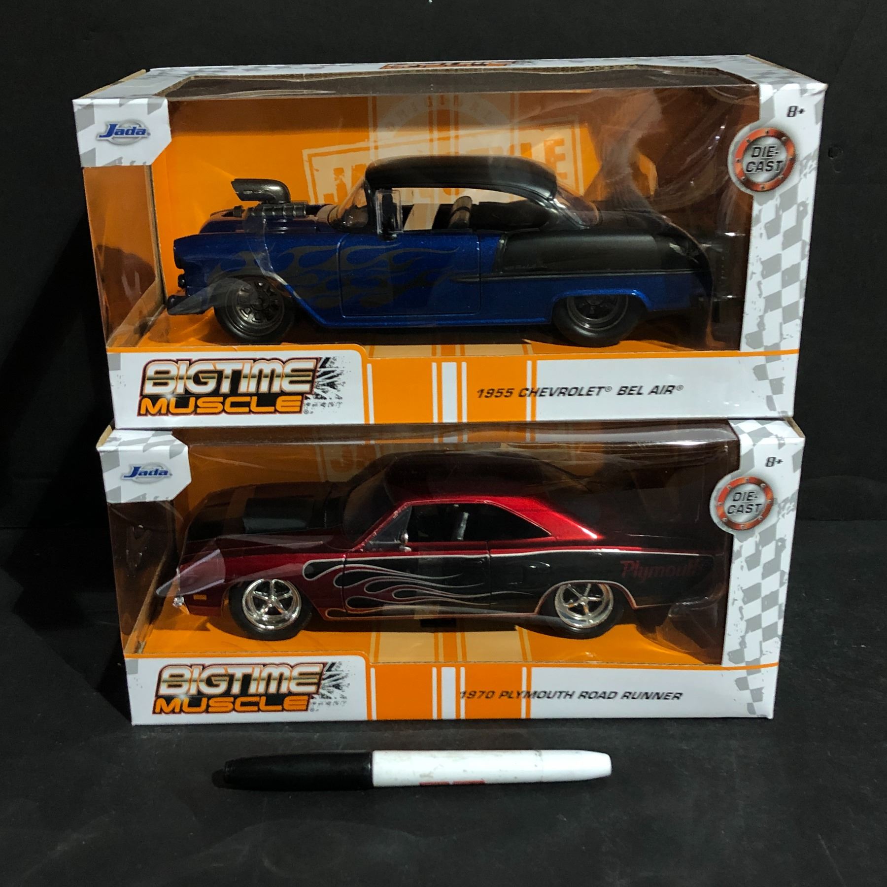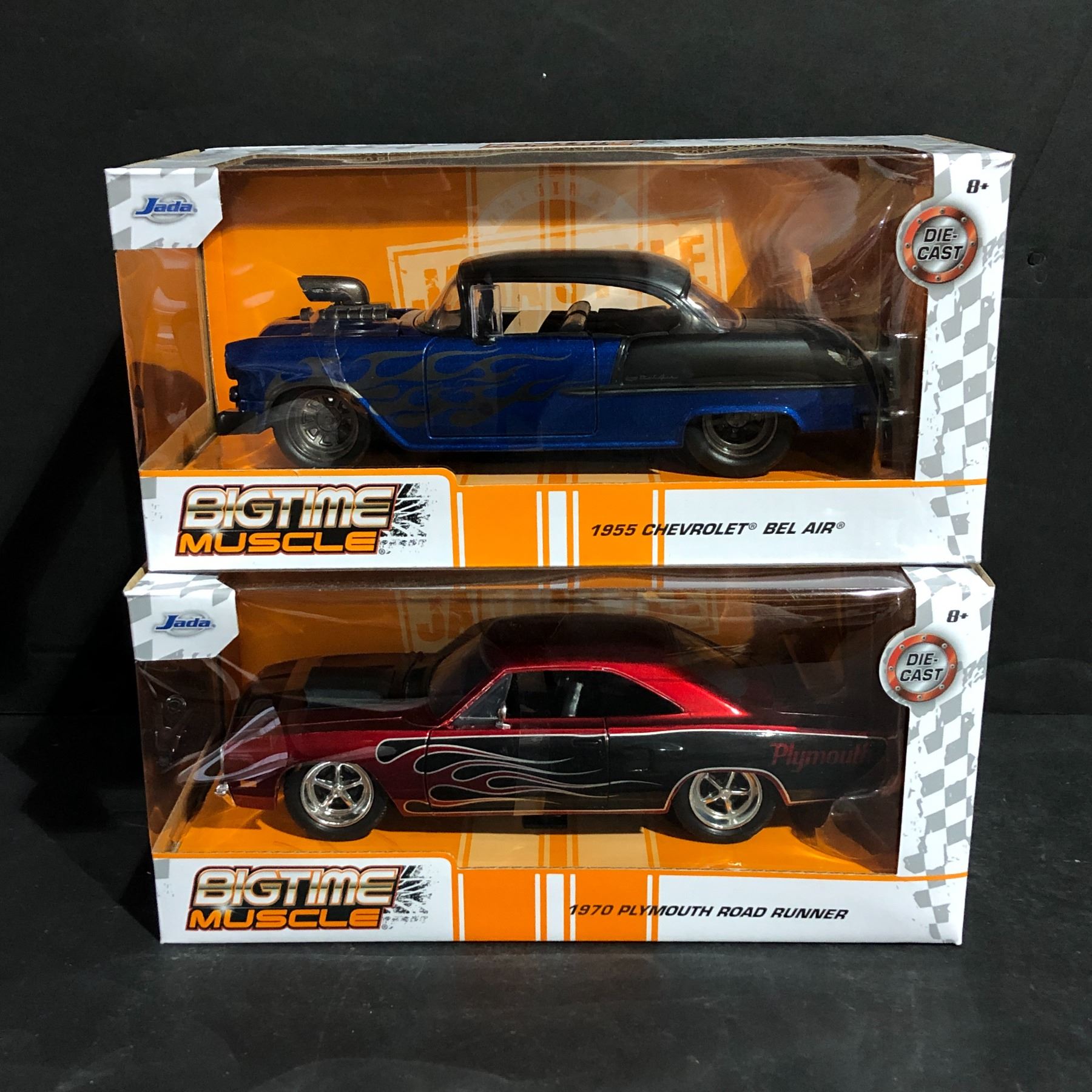 2pc Jada Bigtime Muscle die-cast - 1955 Chevrolet Bel Air & 1970 Plymouth Road Runner