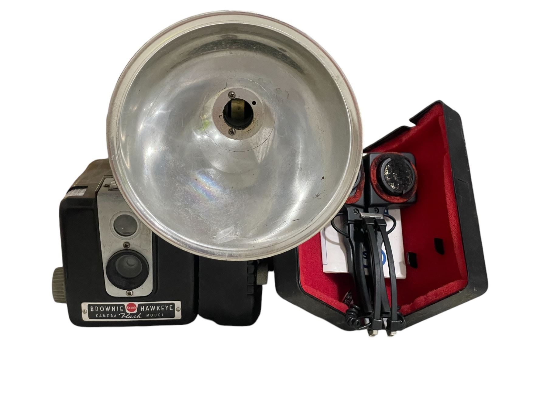 2pc - Kodak Brownie Hawkeye camera with flash & Esso compact stereo headphone system