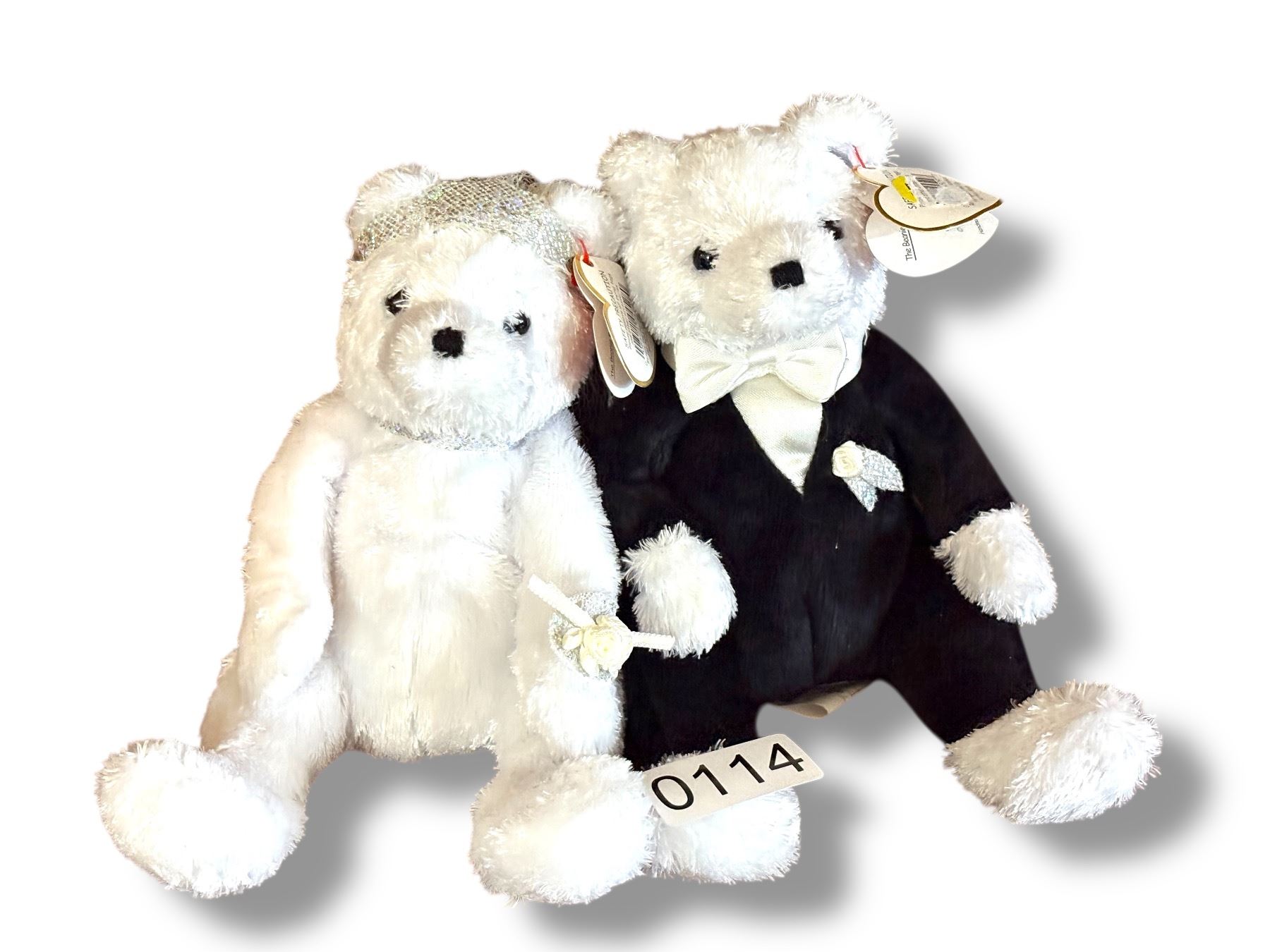 2pc TY Beanie Babies collectible Bride & Groom stuffed polar bears - 8in tall each