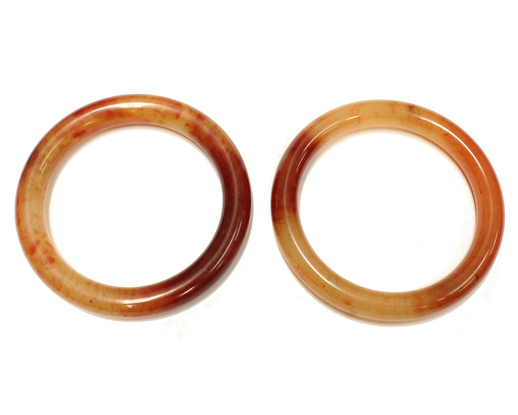 2x Jadeite Bangle Bracelets Light to Dark Red Colour fits up to 7" Wrist Size Authentic Jadeite High Value
