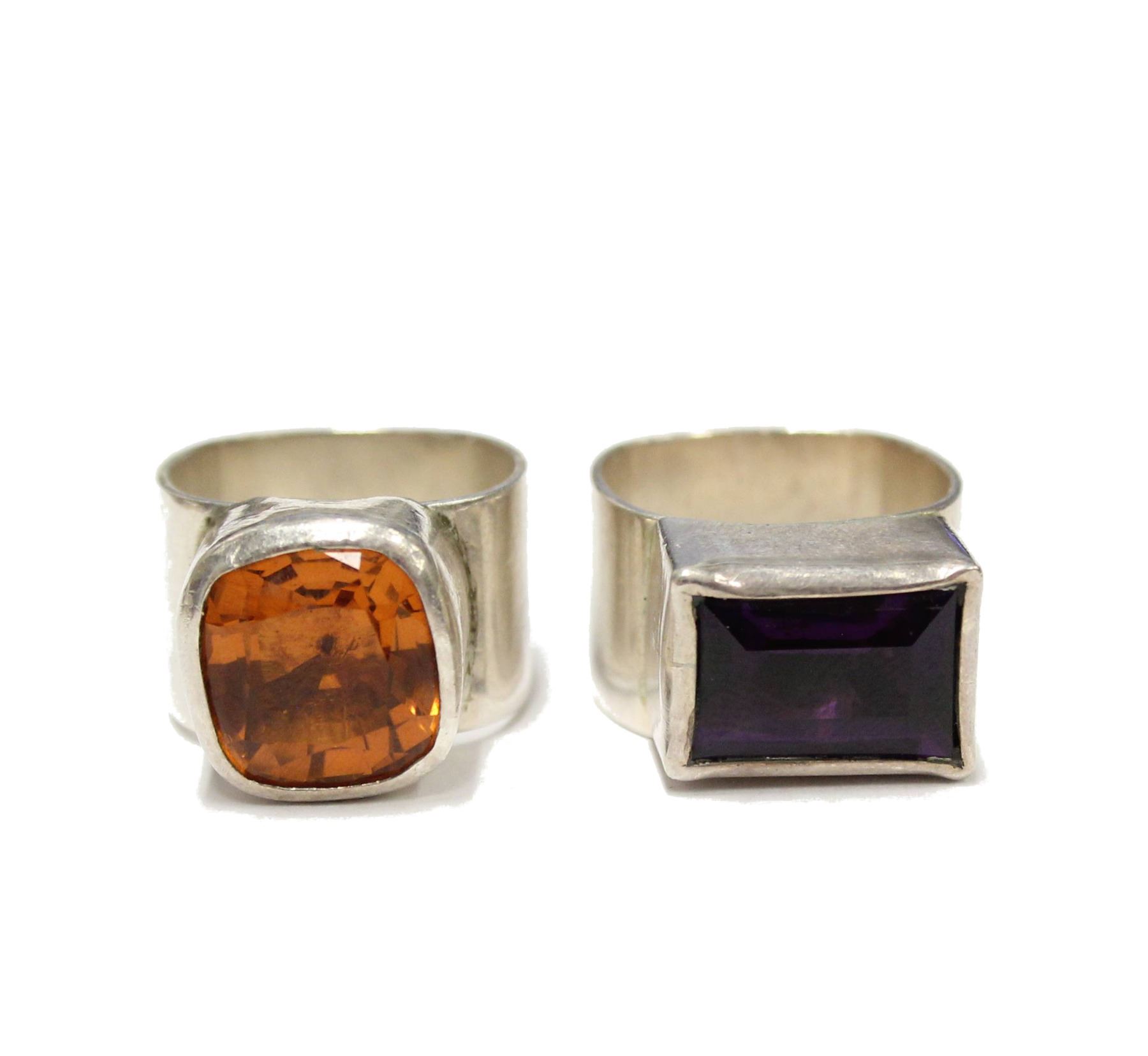 2x Fine Amethyst & Citrine Solitaire Sterling Silver Rings Matching Set Size 8.5 weight 21grams