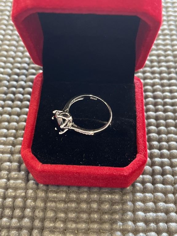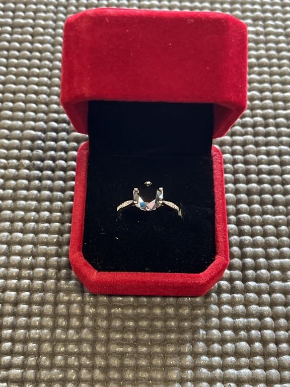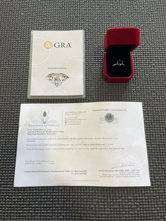3.00 CT GRA CERTIFIED ROUND BRILLIANT CUT MOISSANITE STONE VVS BLACK COLOR WITH 12 ROUND BRILLIANT CUT CUBIC ZIRCONIA SET IN SHANKS SET IN 925 SILVER RING SIZE 7.5 RETAIL VALUE $1,800.00