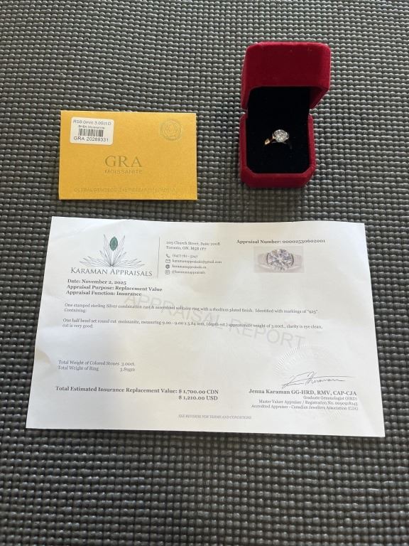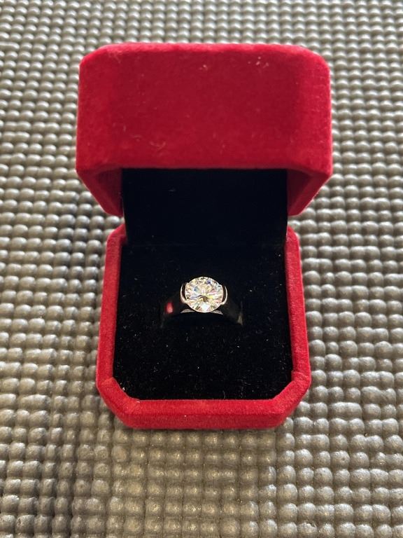 3.00 CT GRA CERTIFIED ROUND BRILLIANT CUT MOISSANITE STONE VVS D COLOR SET IN HALF BEZEL SET IN 925 SILVER RING SIZE 6.75 RETAIL VALUE $1,700.00