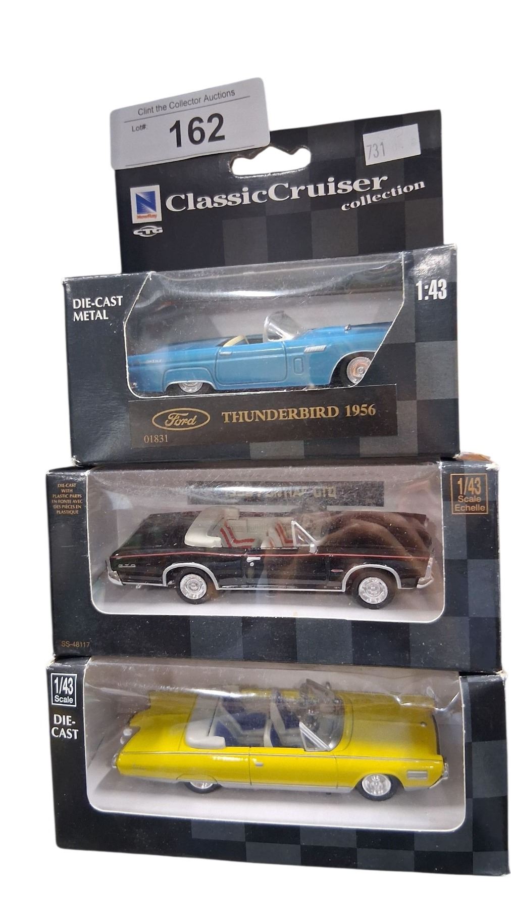 3 1:43 scale die-cast collector cars, 56 T-Bird, 66 Pontiac, 64 Turbine