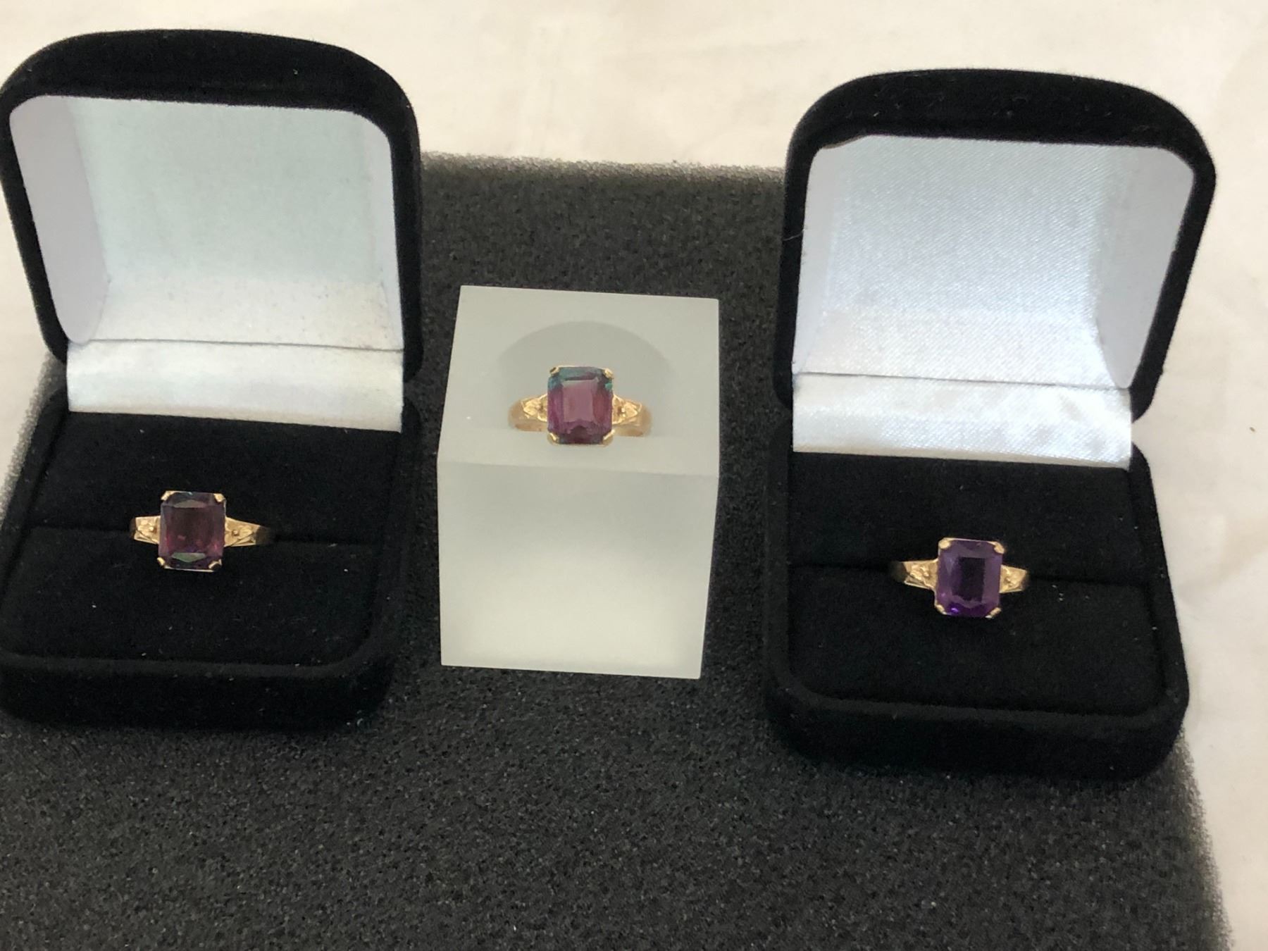 3-10K LADIES RINGS WITH MAUVE PASTE