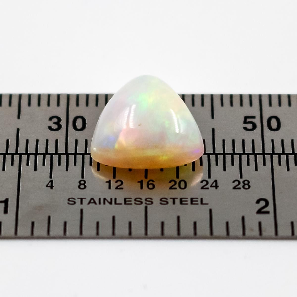 DAZZLING 3.12 CT CERTIFIED MULTI COLOR PLAY AUSTRALAIN OPAL. DISPLYING BRILLIANT BURSTS OF RED, GREEN, ORANGE AND PINK FLASHES THROUGH A TRANSLUCENT BODY. GORGEOUS TRILLIOIN CABOCHON CUT MEASURING 11.40 x 11.56 x 5.51 mm. UNHEATED . UNTREATED 100 % NATURAL . PLEASE SEE CERTIFICATION FOR FURTHER DETAILS. PICTURES CAN'T UNVEIL THE BEAUTY OF THIS HIGH GRADE OPAL.