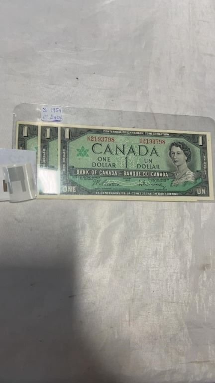 3- 1954 1 DOLLAR BILS UNCIRCULATED