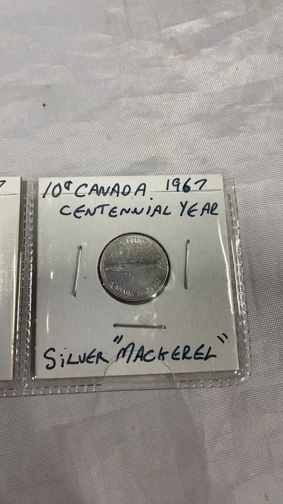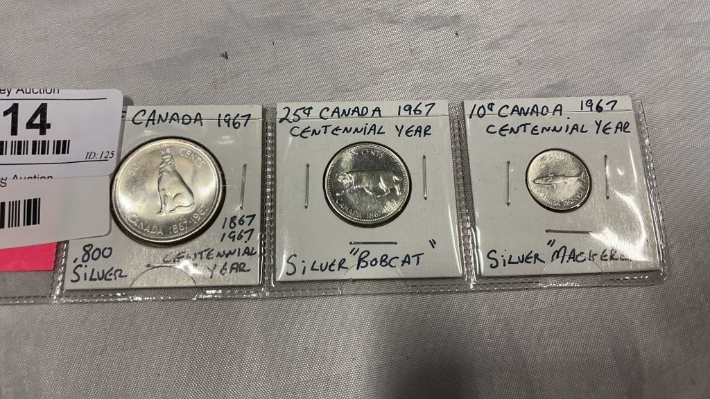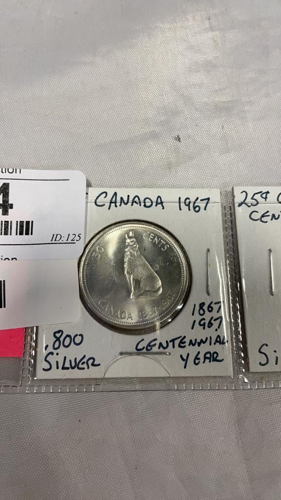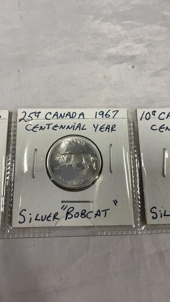 3 1967 SILVER CANADIAN COINS CENTENNIAL YEAR 1867-1967 - 50 CENT, 25 CENT, 10 CENT .800 SILVER