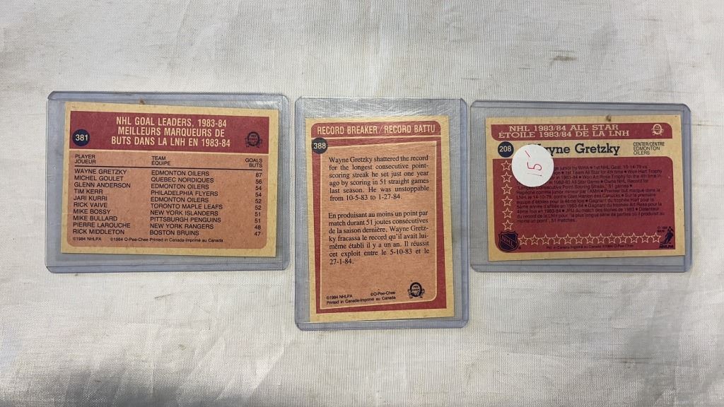 3 1980s OPC WAYNE GRETZKY HOCKEY CARDS