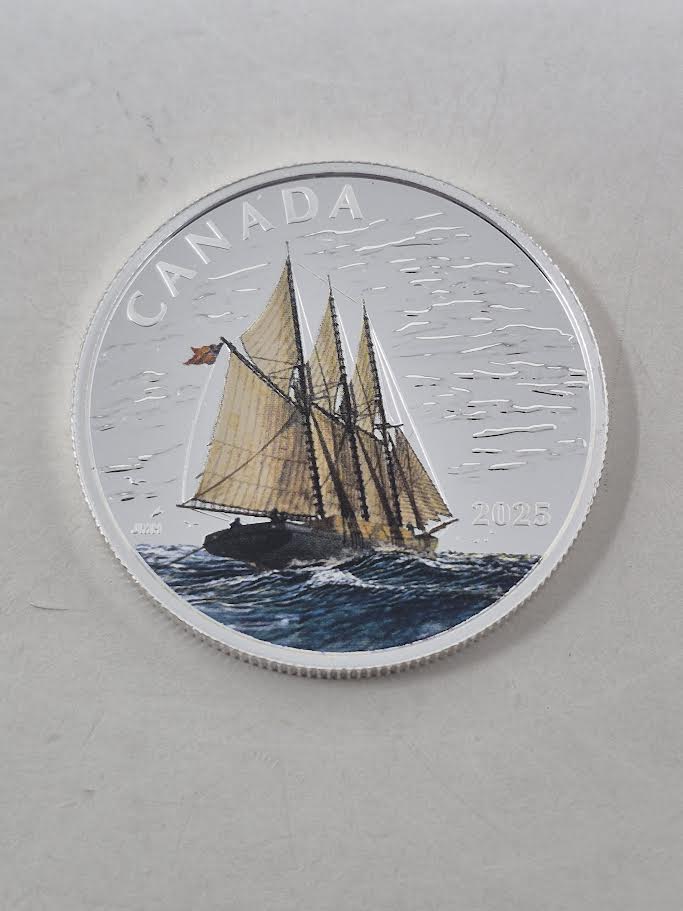 2025. Tall Ships: Three Masted Schooner. Colorized. Only 15,000 Minted. Royal Canadian Mint. Tax exempt.