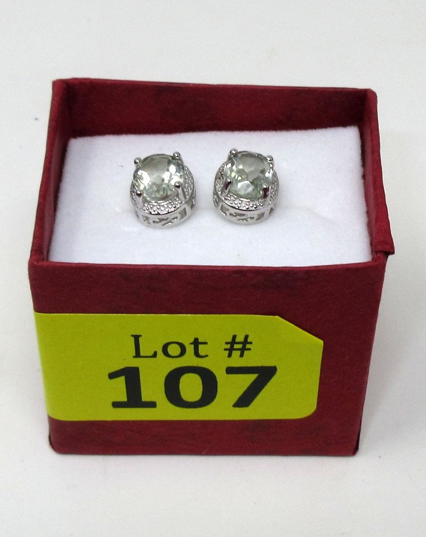 Lively green-yellow amethyst. VS Clarity. Post & butterfly backs. Includes $350 certificate.