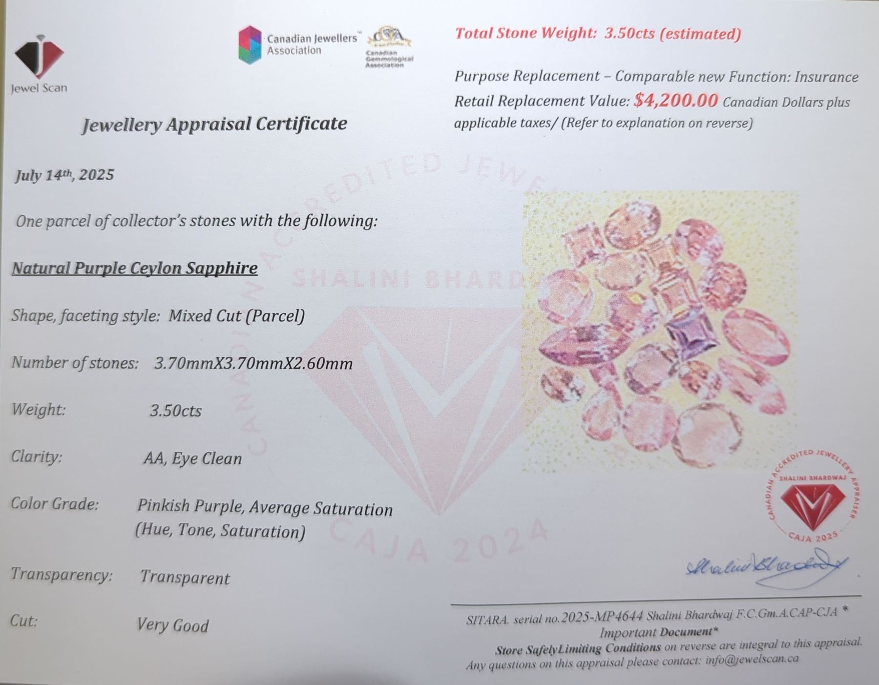 3.5 ct Certified Purple Sapphire gemstone Parcel ($4,200 Appraisal)