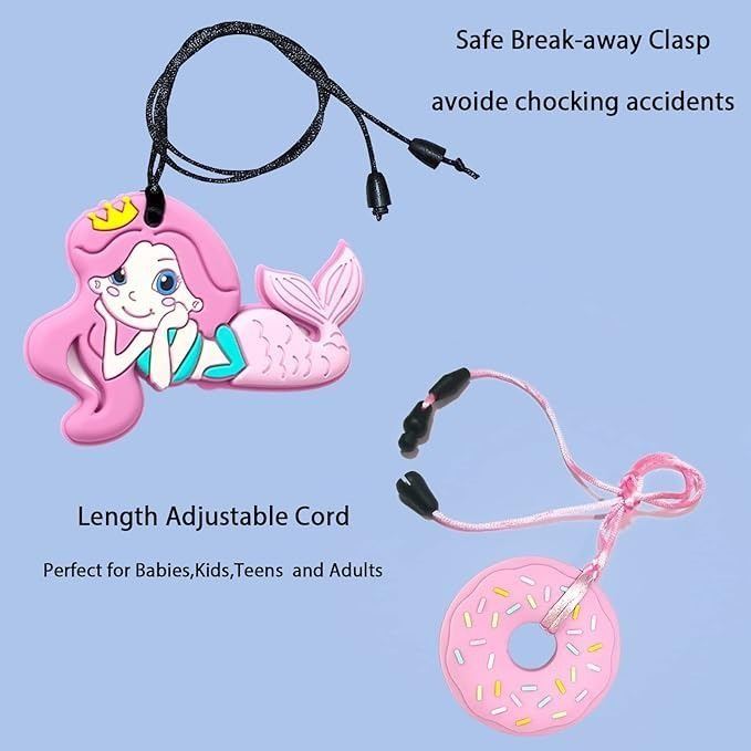 - Chew Necklaces for Sensory Kids; 5 PCS Silicone Chewable Necklaces for Kids or Adults That Like Biting or Have Sensory Issues -Perfectly Textured Silicone Baby Teether Chewy Toys-Chewy Necklace Sensory Toys