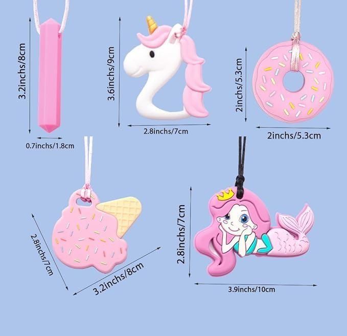 - Chew Necklaces for Sensory Kids; 5 PCS Silicone Chewable Necklaces for Kids or Adults That Like Biting or Have Sensory Issues -Perfectly Textured Silicone Baby Teether Chewy Toys-Chewy Necklace Sensory Toys