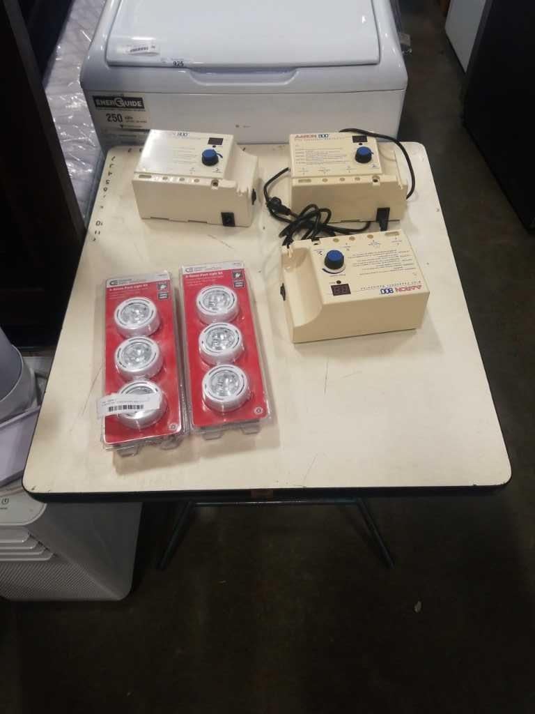 3 AARON 800 DESSICATORS, AND 2 3PACKS OF XENON PUCK LIGHTS