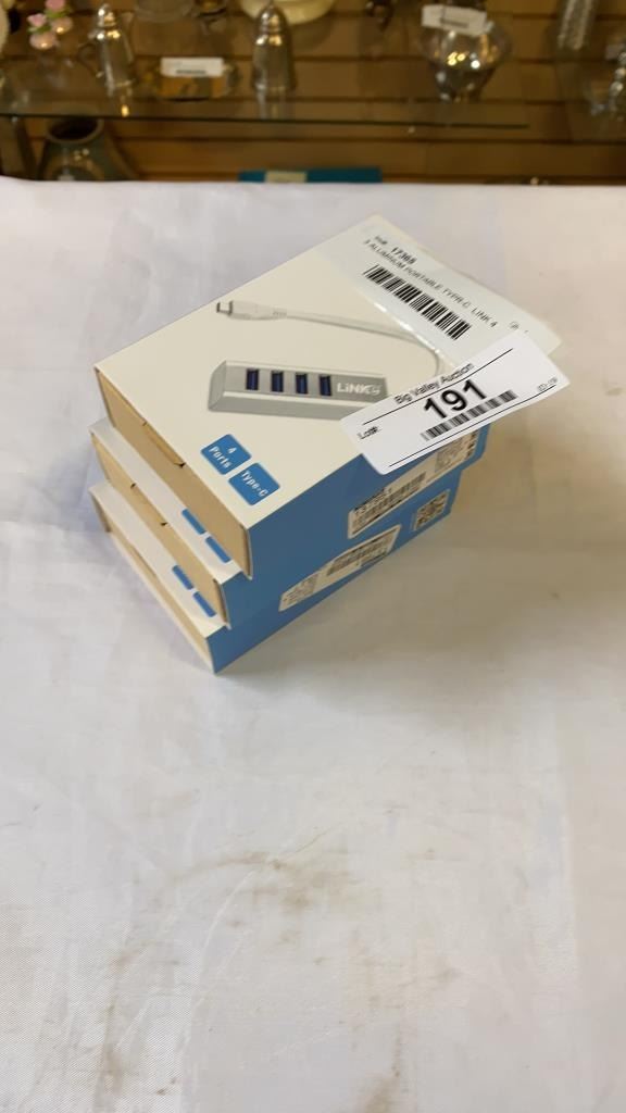 3 ALUMINUM PORTABLE TYPR-C LINK 4 PORT USB 3.0 HUB RETAIL $30EA