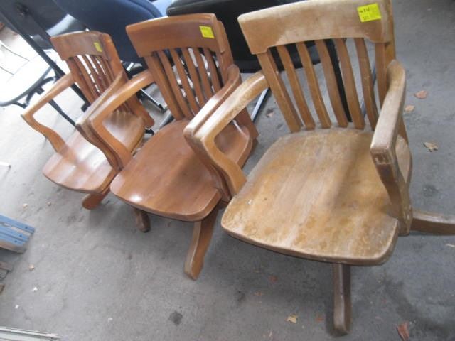 3 ANTIQUE DESK CHAIRS, NO CASTORS