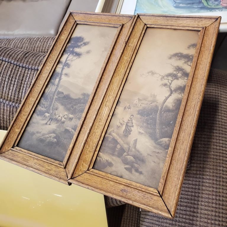 3 ANTIQUE PICTURES, FLORAL AND TWO FAMR SCENES