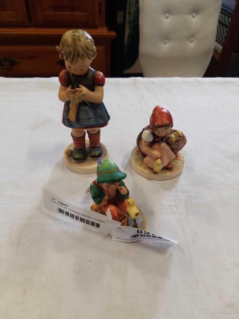 3 ANTIQUE W. GERMAN GOEBEL HUMMEL FIGURINES ALL ARE STAMPED, NO CHIPS OR CRACKS
