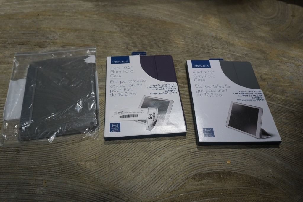 3 AS NEW IPAD 10.2 FOLIO CASE - 1 PLUM, 2 GREY