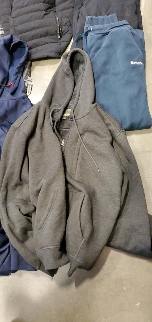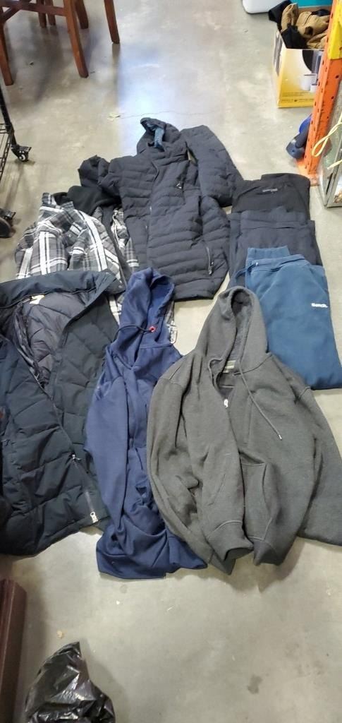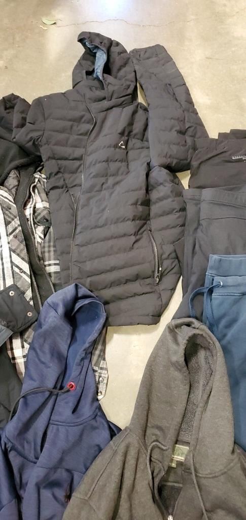 3 AS NEW MEN'S WINTER JACKET SIZE XL 3 PAIRS OF COFFEE PANTS AND 2 HOODIES INCLUDING SPYDER