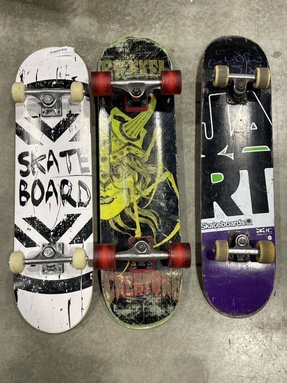 3 ASSORTED SKATEBOARDS, LONGBOARD