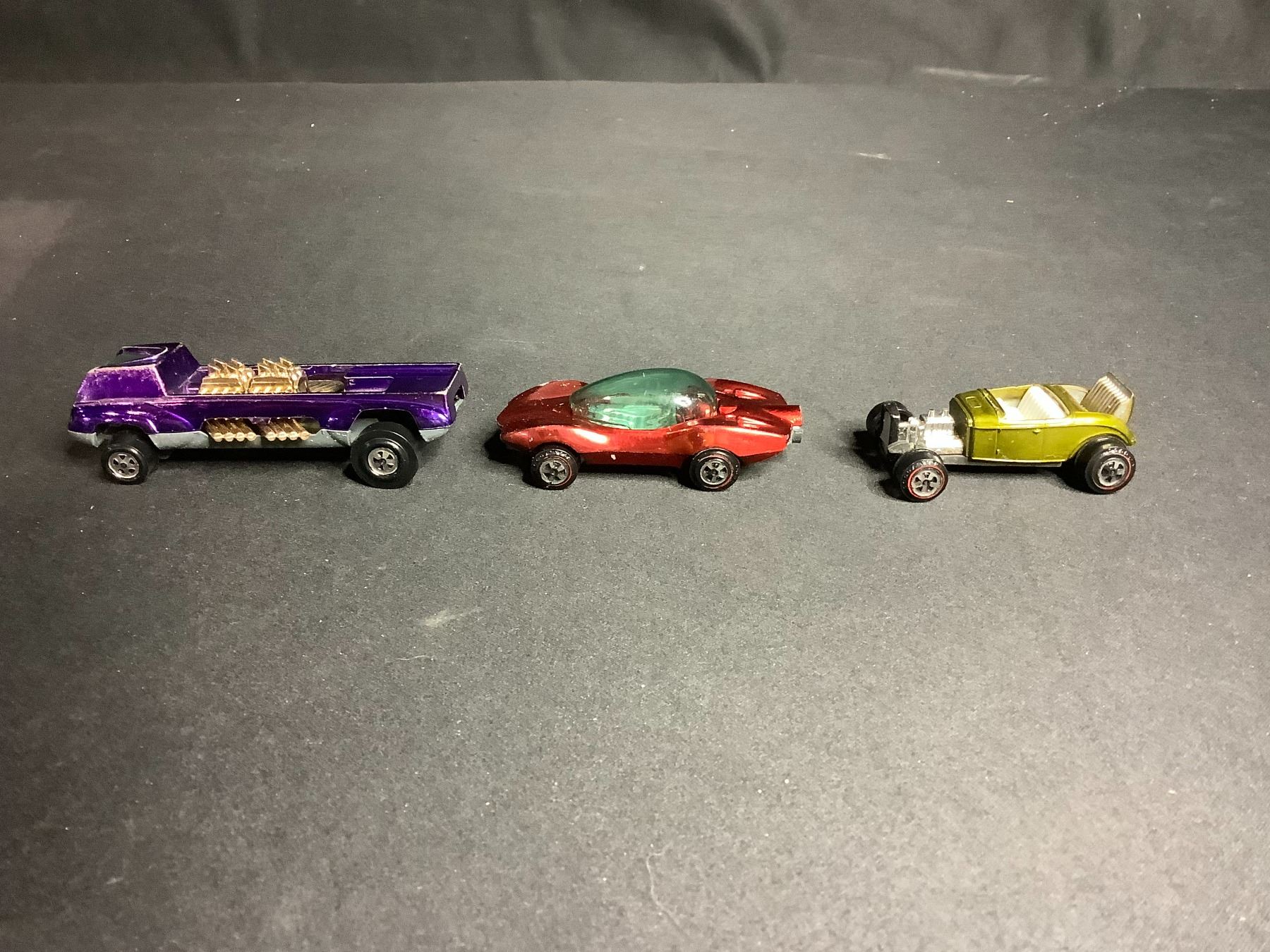 3 ASSORTED TOPPER JOHNNY LIGHTNING DIE CAST CARS INCLUDING; HAIRY HAULER, CUSTOM 32 FORD & CUSTOM TURBINE