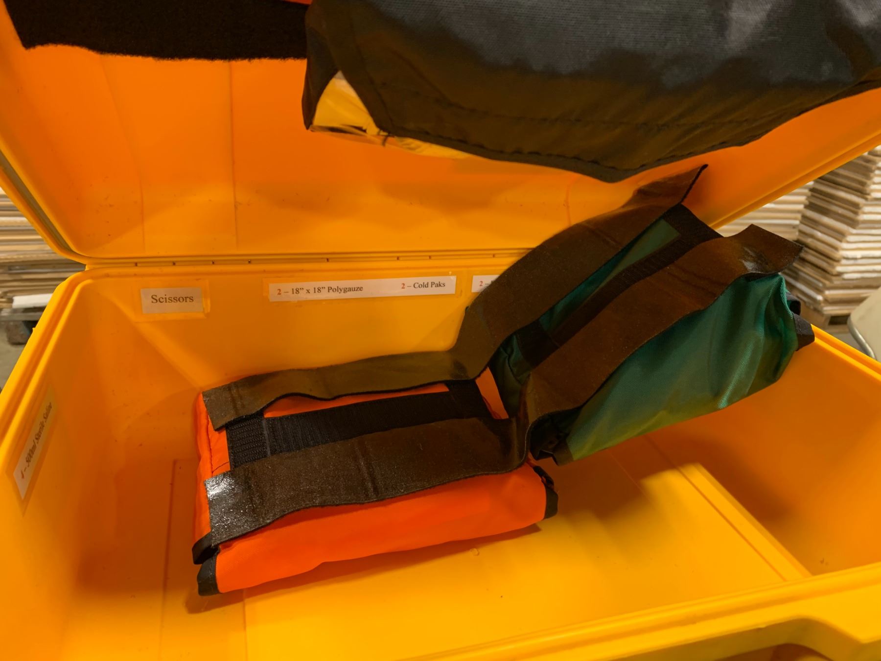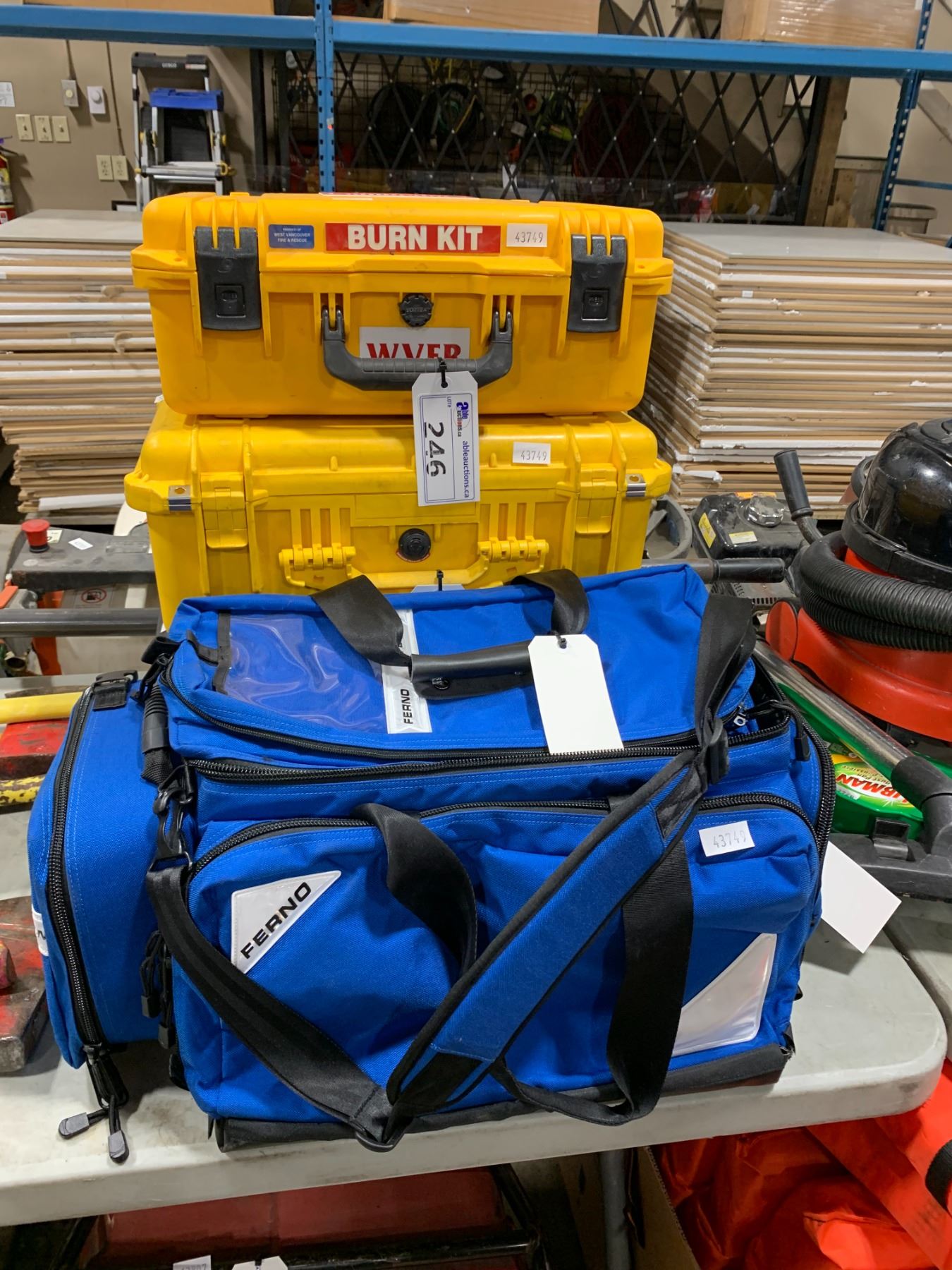 3 ASSORTED YELLOW/BLACK HARD EQUIPMENT CASE & FERNO BLUE PROFESSIONAL TRAUMA BAG