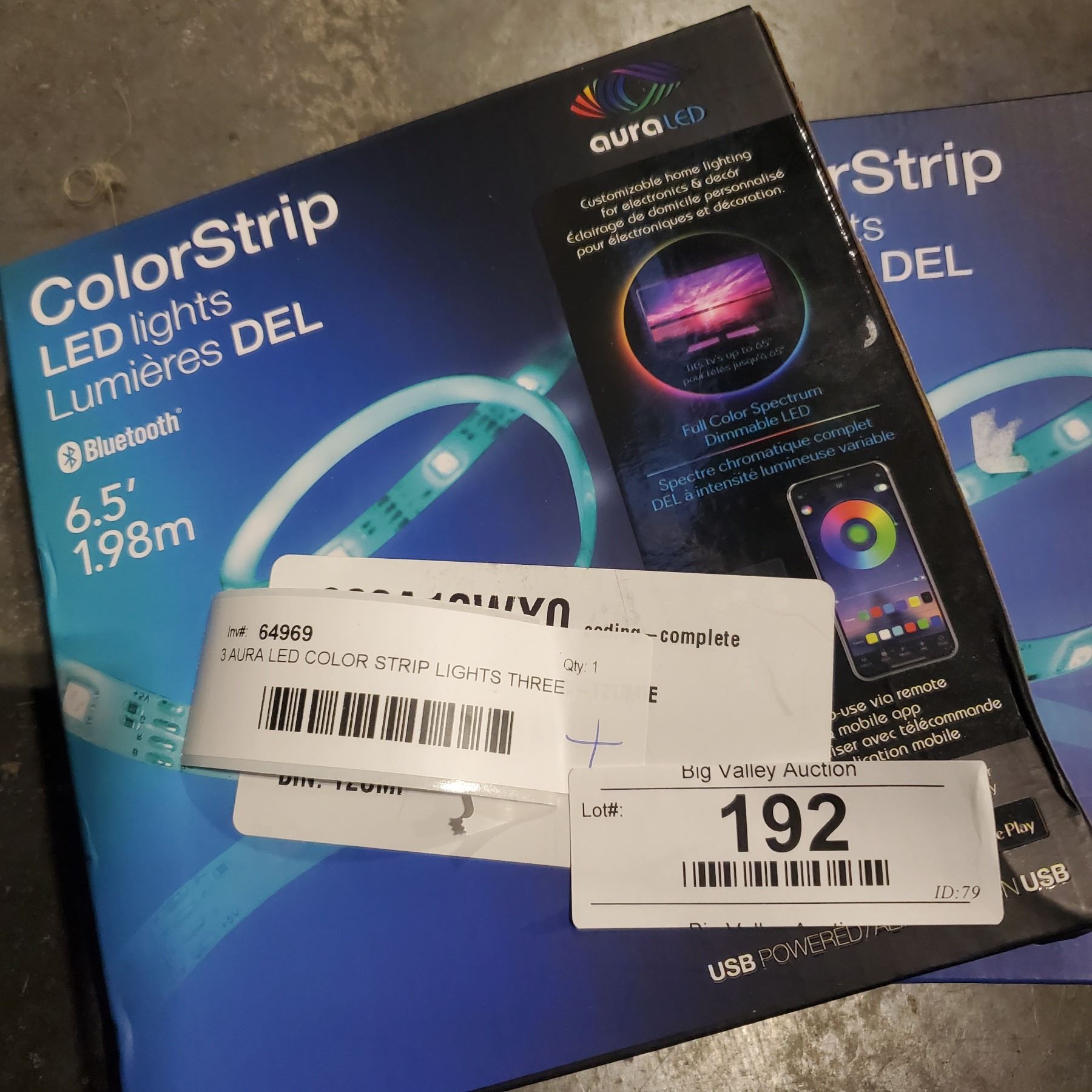 3 AURA LED COLOR STRIP LIGHTS THREE 6.5 FOOT, tested working
