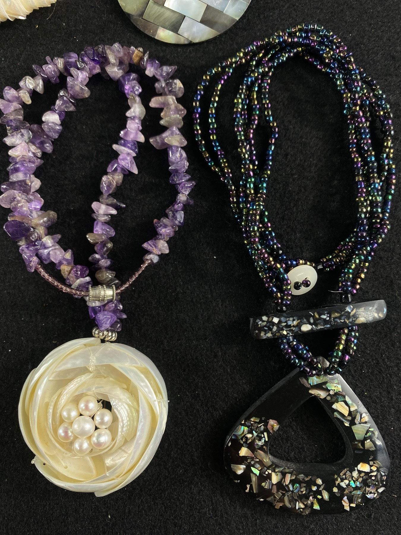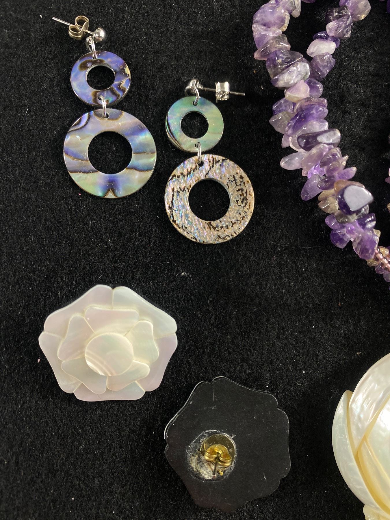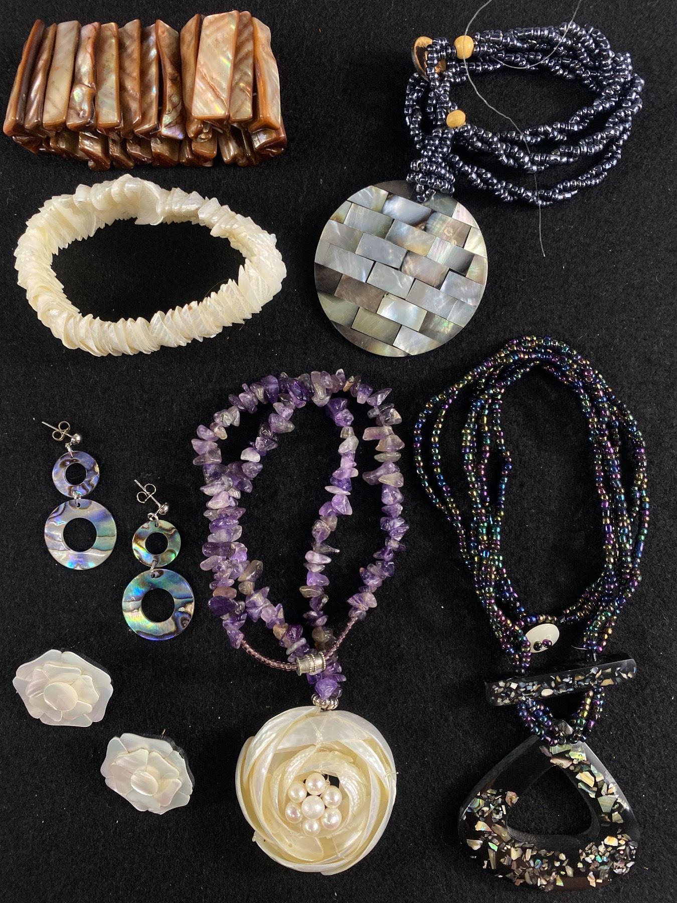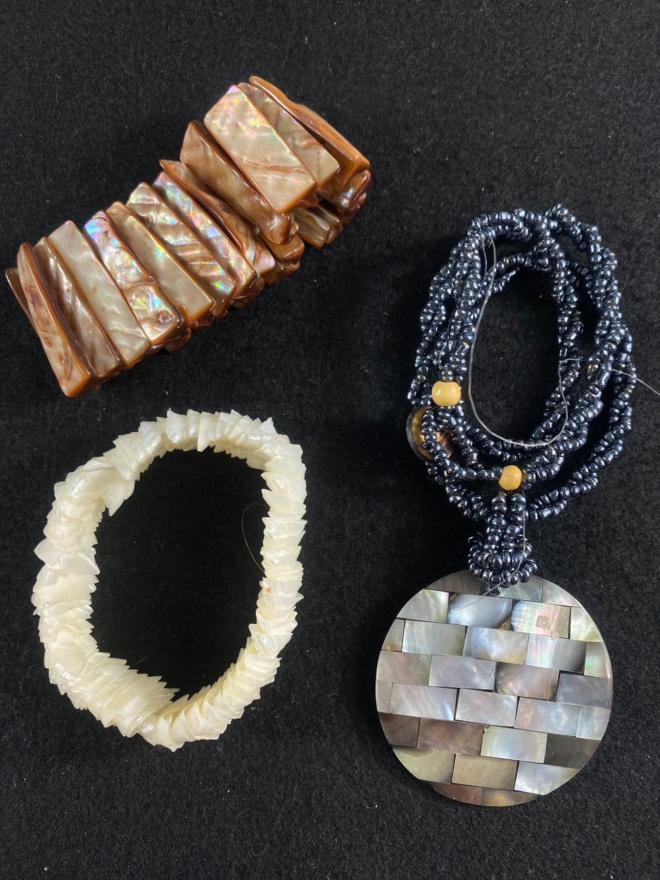 3 Abaloni & Mother Of Pearl Necklaces, 2 Bracelets & 2 Pairs Of Earrings