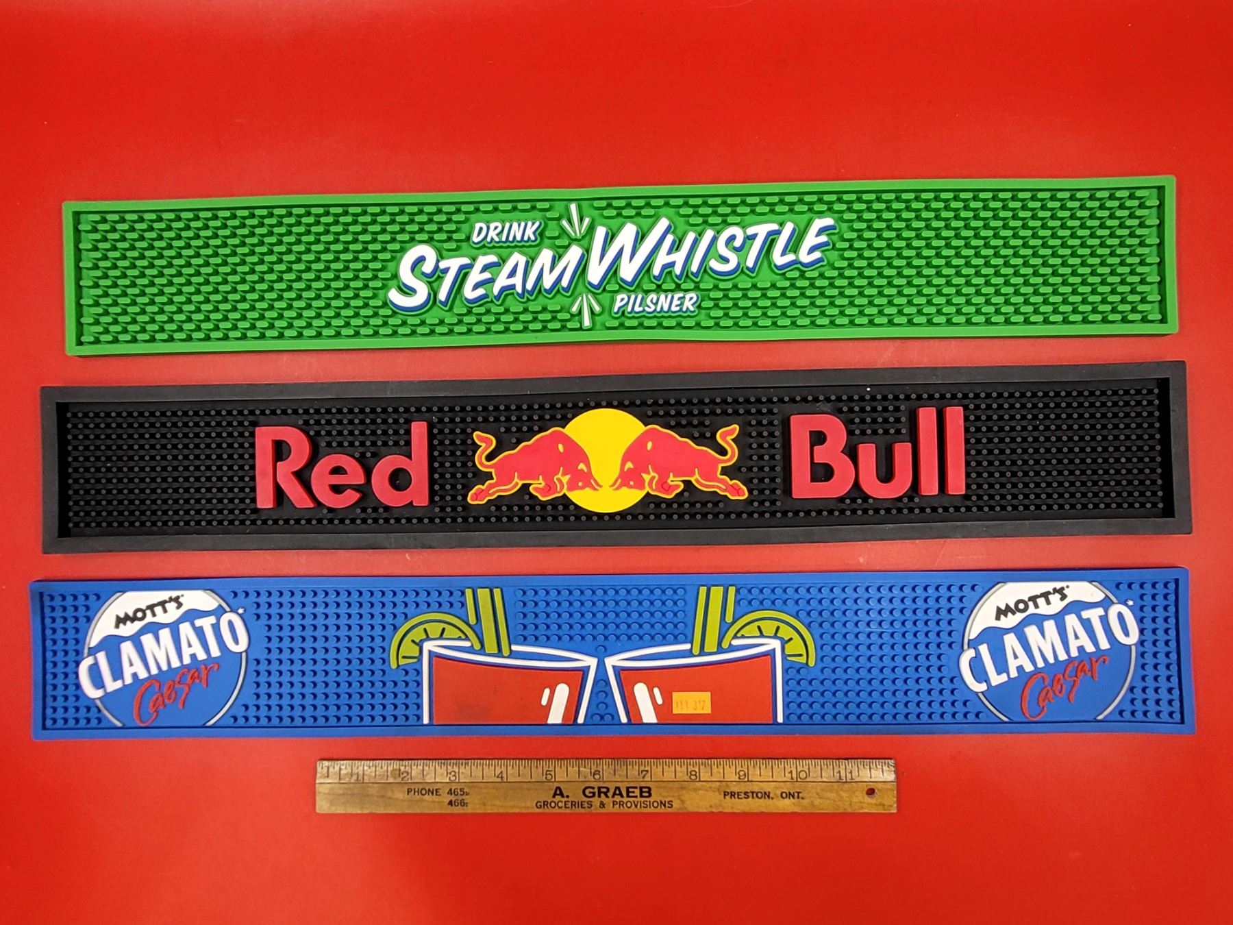 3 Advertising Bar Mats (Red Bull, Mott's Clamato, & Steam Whistle)