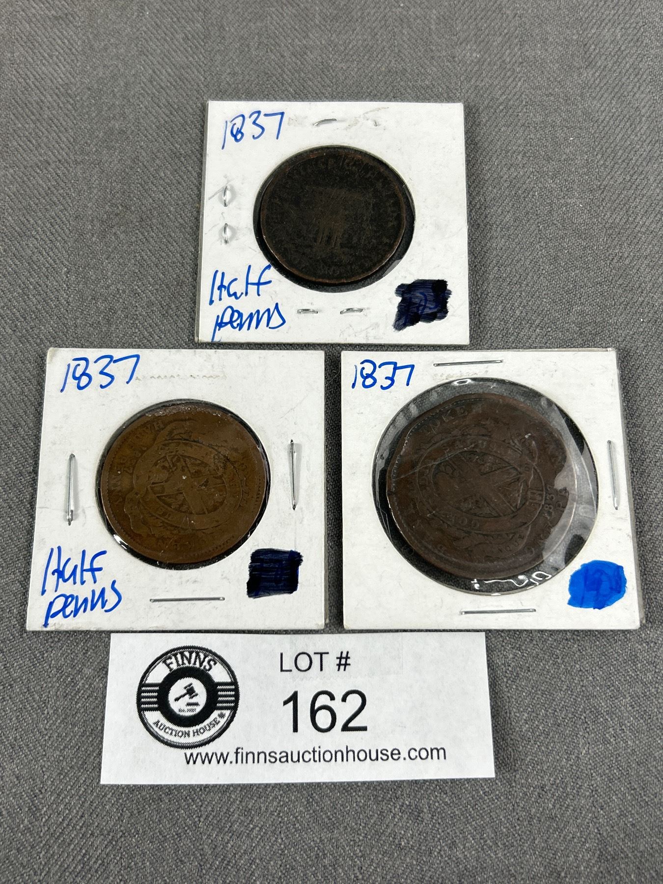 3 Antique 1837 Canadian Bank Token Coins - 2 Half Pennies & 1 Penny