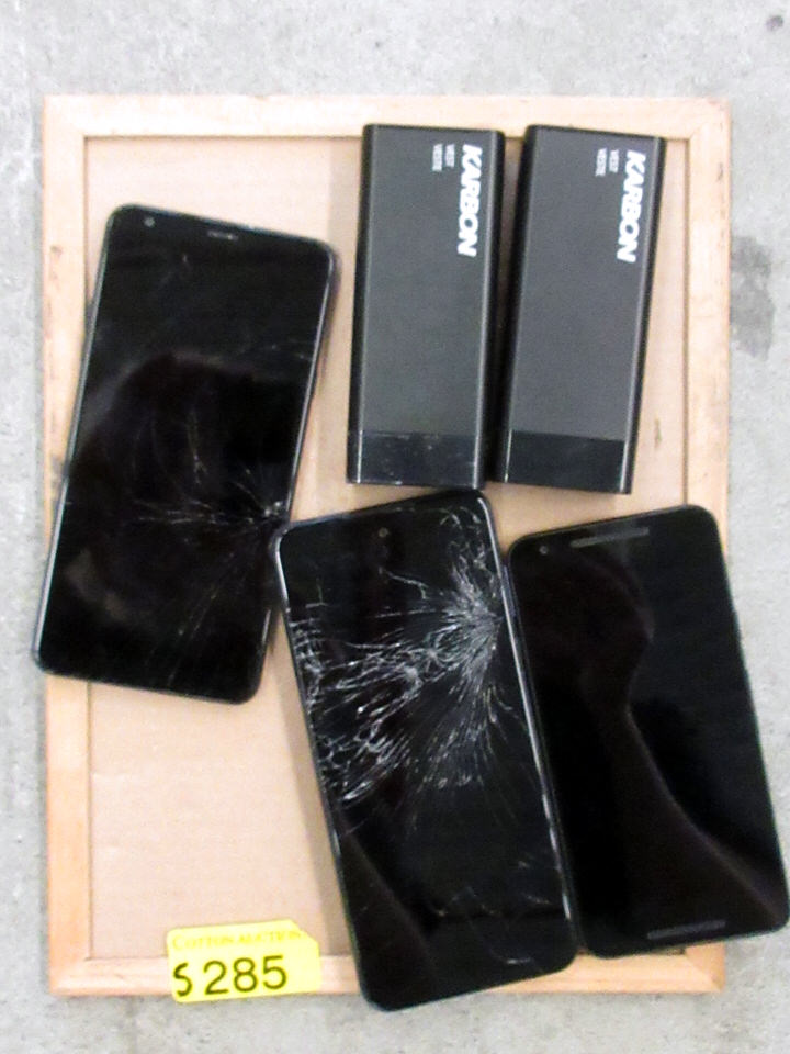 2 LG & 1 Moto G phone (2 screens are damaged). No cords, cables or adaptors. Customer returns. As is.