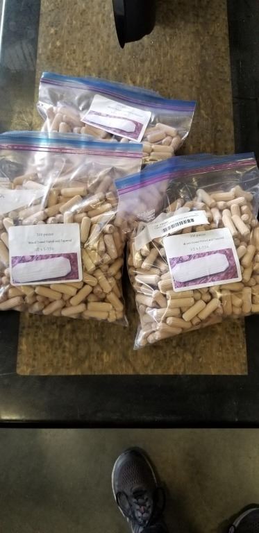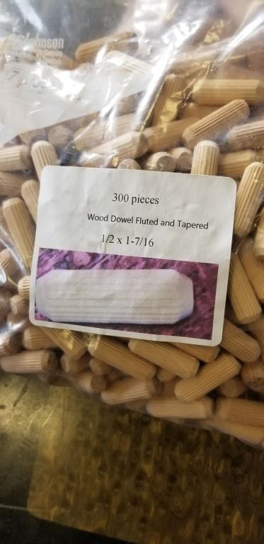 3 BAGS 1/2" X 1-7/16" FLUTED AND TAPERED WOOD DOWELS - 300PC PER BAG, 900PC TOTAL