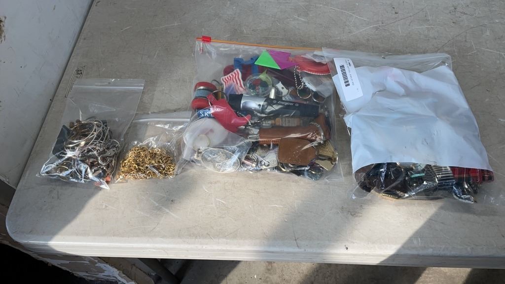 3 BAGS OF WATCHES, JEWELRY AND KEYCHAINS