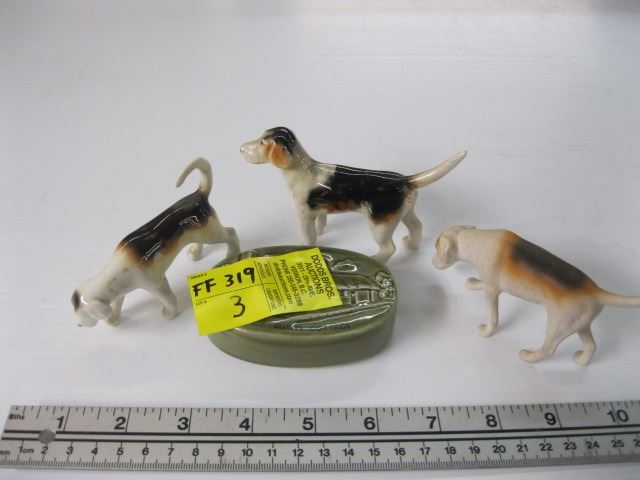 3 BESWICK DOGS, SMALL BURNS COTTAGE DECANTER