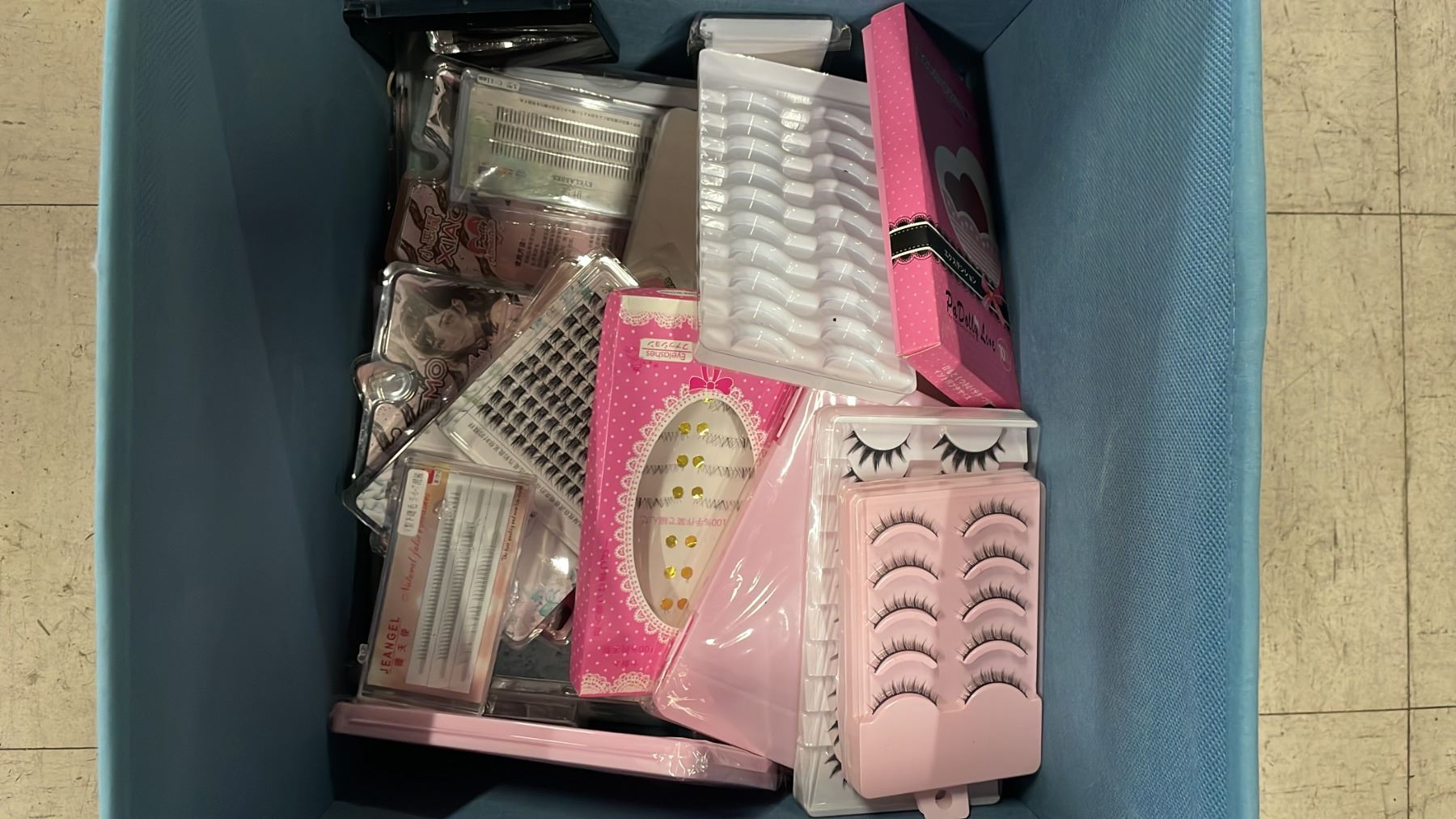 (3) BINS OF ASSORTED MAKEUP, SKIN CARE MASKS & FALSE EYELASHES